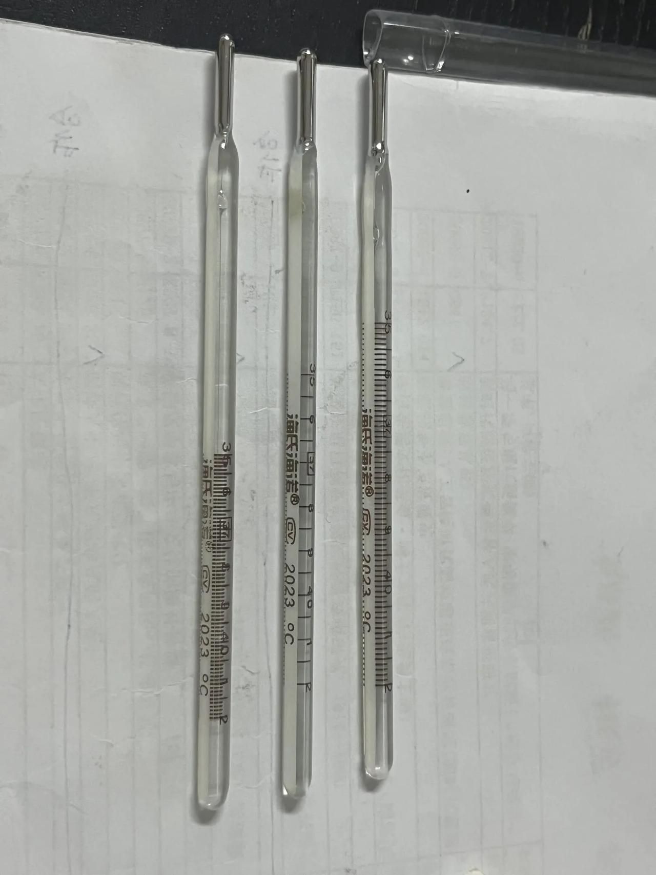 水银体温计刻度不一样 上午在小超市买来3个水银体温计 刻度居然不一样,长短也不太一样,是不是买到假的了?