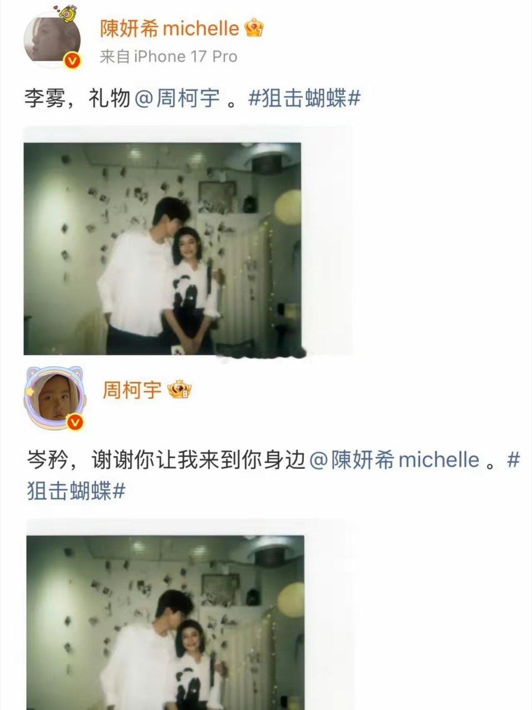 不是吧陈妍希周柯宇官宣?哦,原来是这样,狙击蝴蝶演员剧宣搞得跟剧宣一样没看名字光看图片,还以为他们在一起了呢,原来是狙击蝴蝶大结局了啊没想到这么快,狙击蝴蝶就已经到了尾声了,印象中明明才刚播啊这剧宣真的用心了,两位演员代入角色发微博互动,剧粉狠狠心动图片也很有感觉啊,看了图片自动代入电视剧角色,回想起剧中两人感情粉丝直呼“我不行了,太甜了!”,微博上全是粉红泡泡呢你们看完了狙击蝴蝶吗?