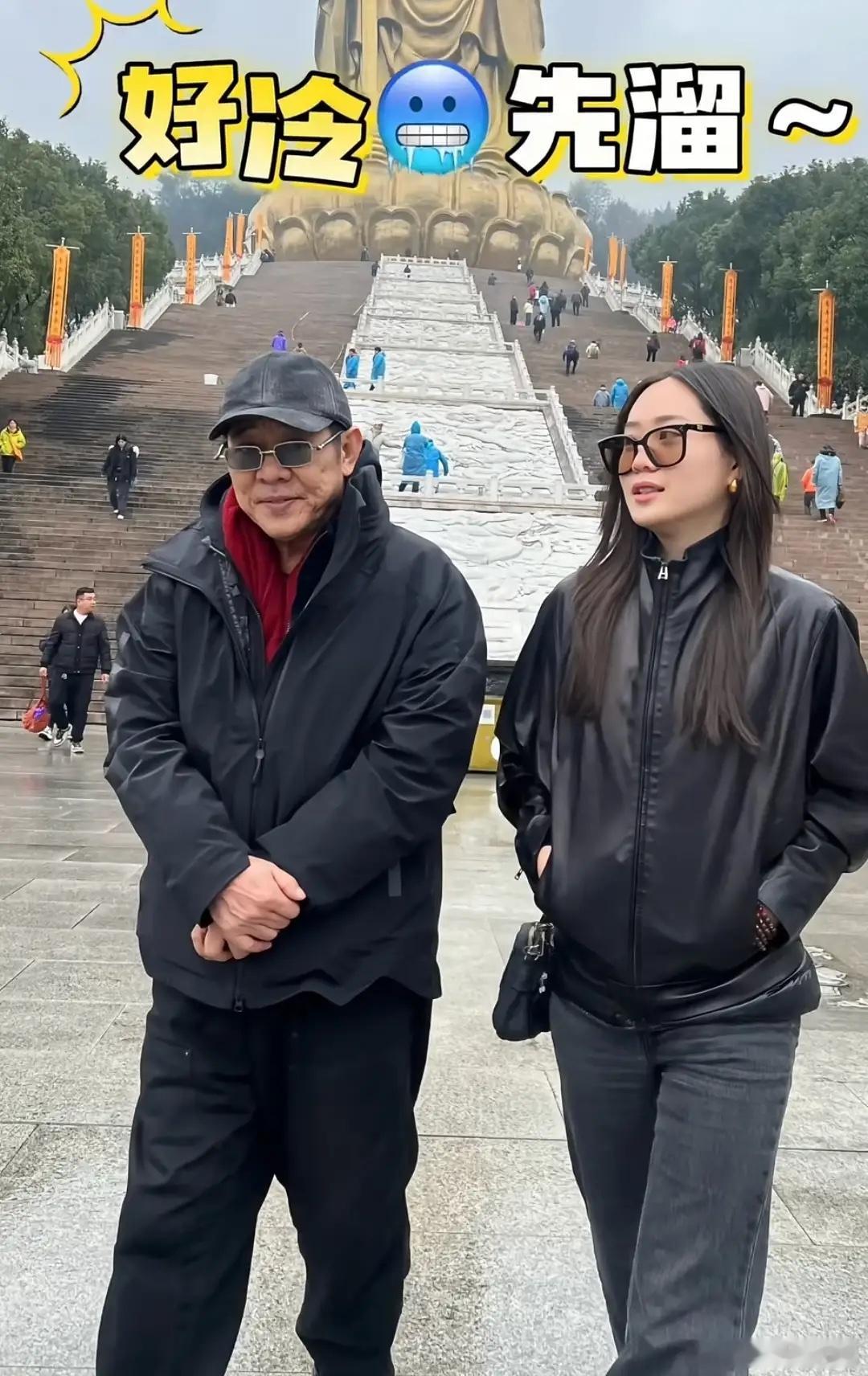 李连杰九华山祈福,小女儿随行长得像利智,他挽着女儿走眼神宠溺!!!