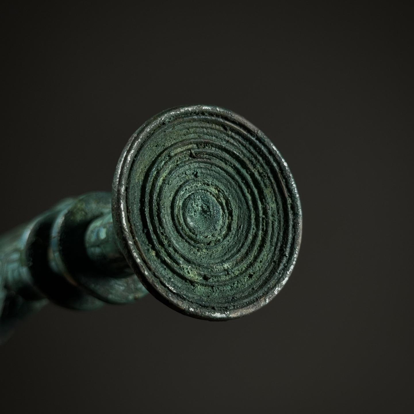 青铜剑。这柄青铜嵌绿松石剑,剑身以松石、红宝错嵌纹饰,工艺卓绝。青铜氧化的青锈里,藏着上古兵器的美学与技艺。 青铜剑古兵器