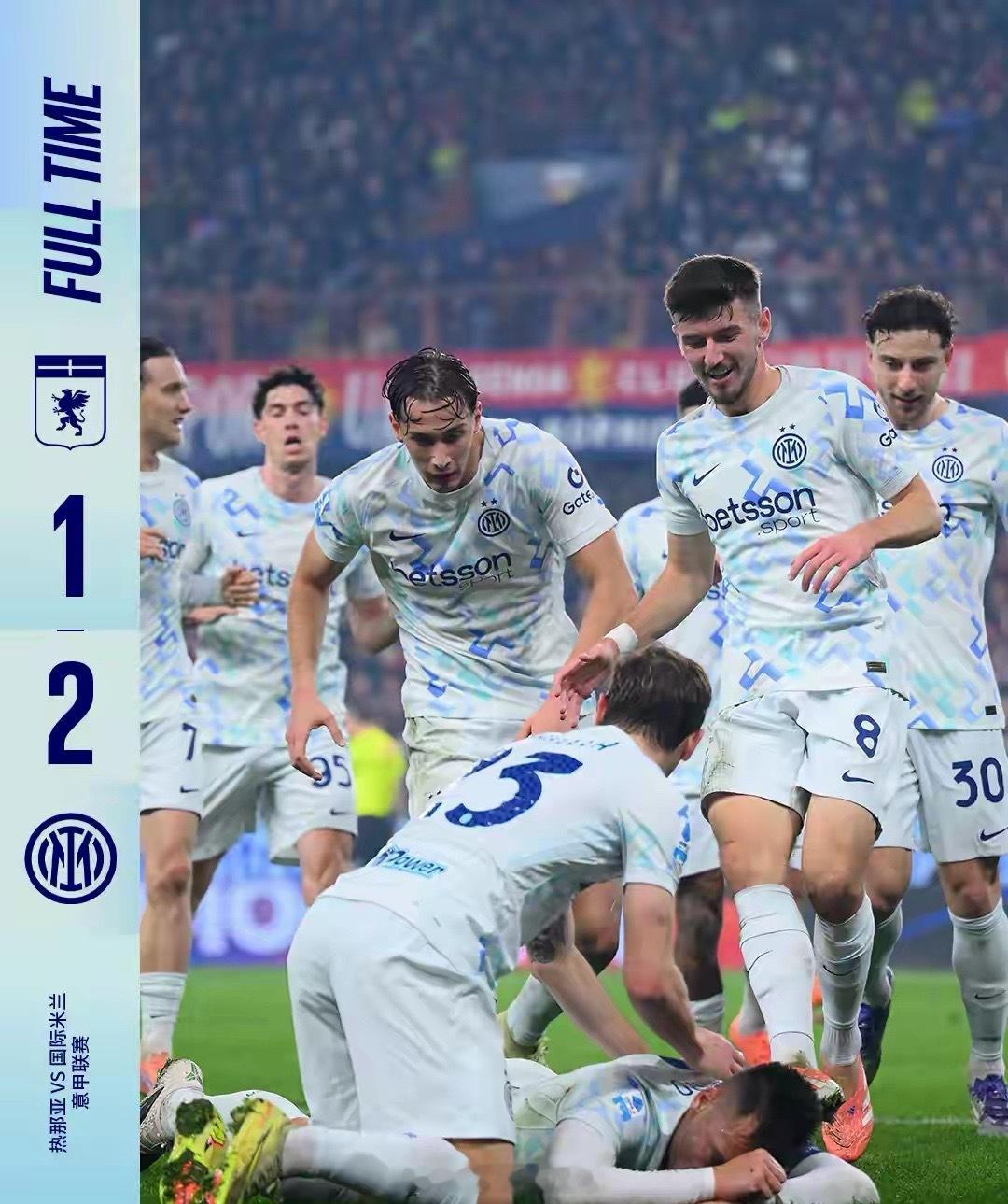 意甲第15轮,国米客场2-1击败热那亚登顶积分榜。劳塔罗传射建功,巴雷拉、巴斯托尼攻防两端贡献突出,三大队长稳固核心。齐沃理念转向务实,下半场变阵541全力防守,直言“3分最重要”,球队顶住压力拿下关键胜利。
