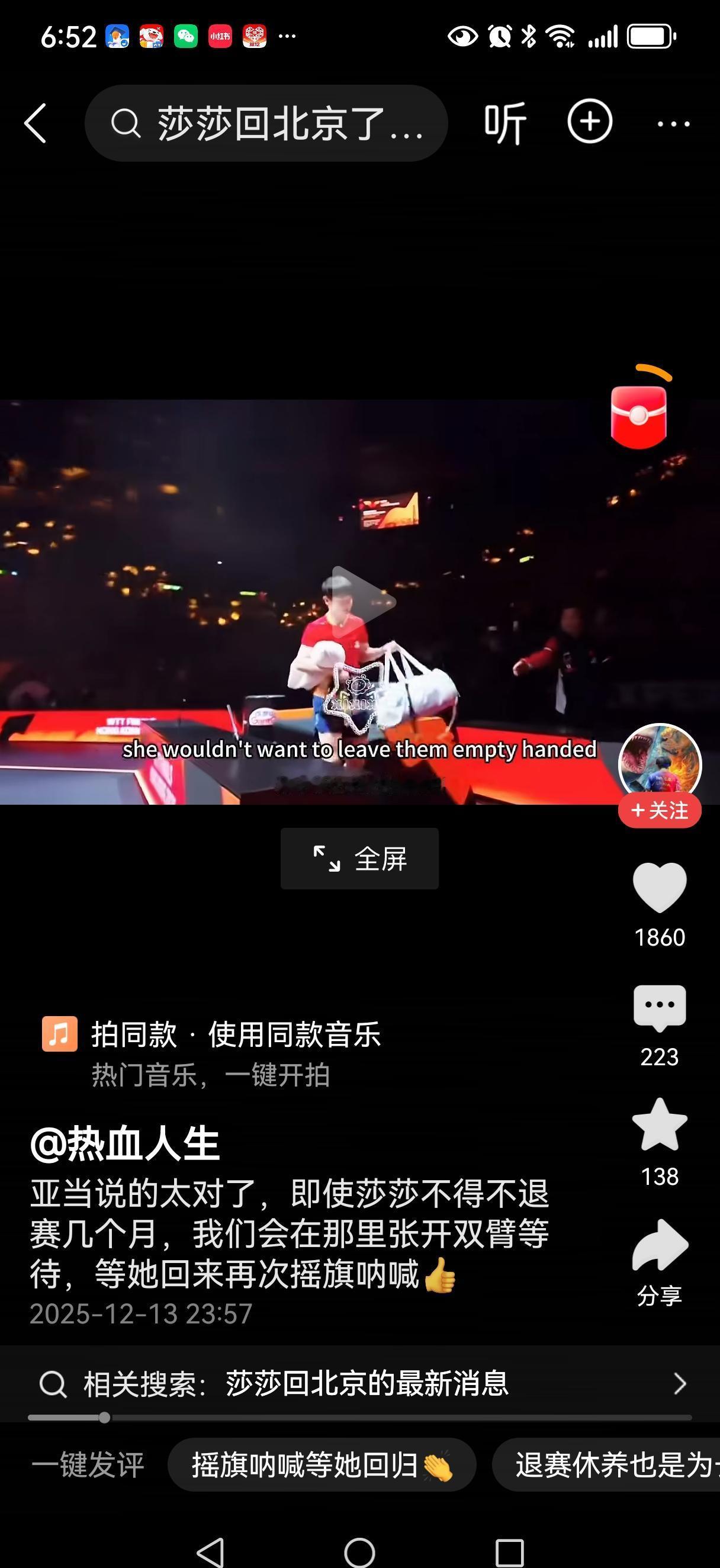 **真正顶级的运动员,不是会忍痛,而是懂刹车。 ** 亚当放下话筒,他记得孙颖莎16岁时眼神里的那股劲儿。 现在她决定给受伤的手腕按下暂停键,这位跟拍她多年的国际乒联记者,反而松了口气。 医疗报告上的“2-3个月恢复期”不是判决书,是战略图。 顶尖竞技的残酷逻辑是:衡量伟大的,不是你带伤上场了多少次,而是你的职业生涯能燃烧多少年。 国际乒联的表态,微博上过亿的阅读声浪,本质都是一句话:我们期待的,是一个能跑完马拉松的冠军,不是一个倒在半路的勇士。 最深刻的支持,不是喊“坚持”,而是告诉她“你可以停”。 冠军的勋章不在肩膀,在能扛起多长的职业生涯。