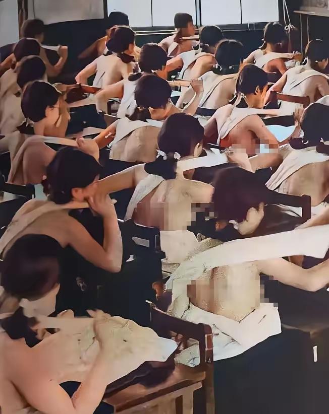 看到1938年日本高中生上课一丝不挂接受军国主义熏陶的老照片,真让人不寒而栗。那时大阪的女子高中,女学生们在教室被要求脱光衣服,进行“干布摩擦”训练。用粗糙毛巾把皮肤擦得通红甚至渗血,还不许有痛苦和羞耻表现,否则就会被批判。 这哪是锻炼,分明是心理摧残,为的是把她们变成战争机器的“零件”。早在1890年日本颁布《教育敕语》,学校就成了军国主义“洗脑工厂”,课本内容全围绕着天皇和战争。这种泯灭人性的教育,让一代人失去自我,成为军国主义的牺牲品,真是可怕至极。