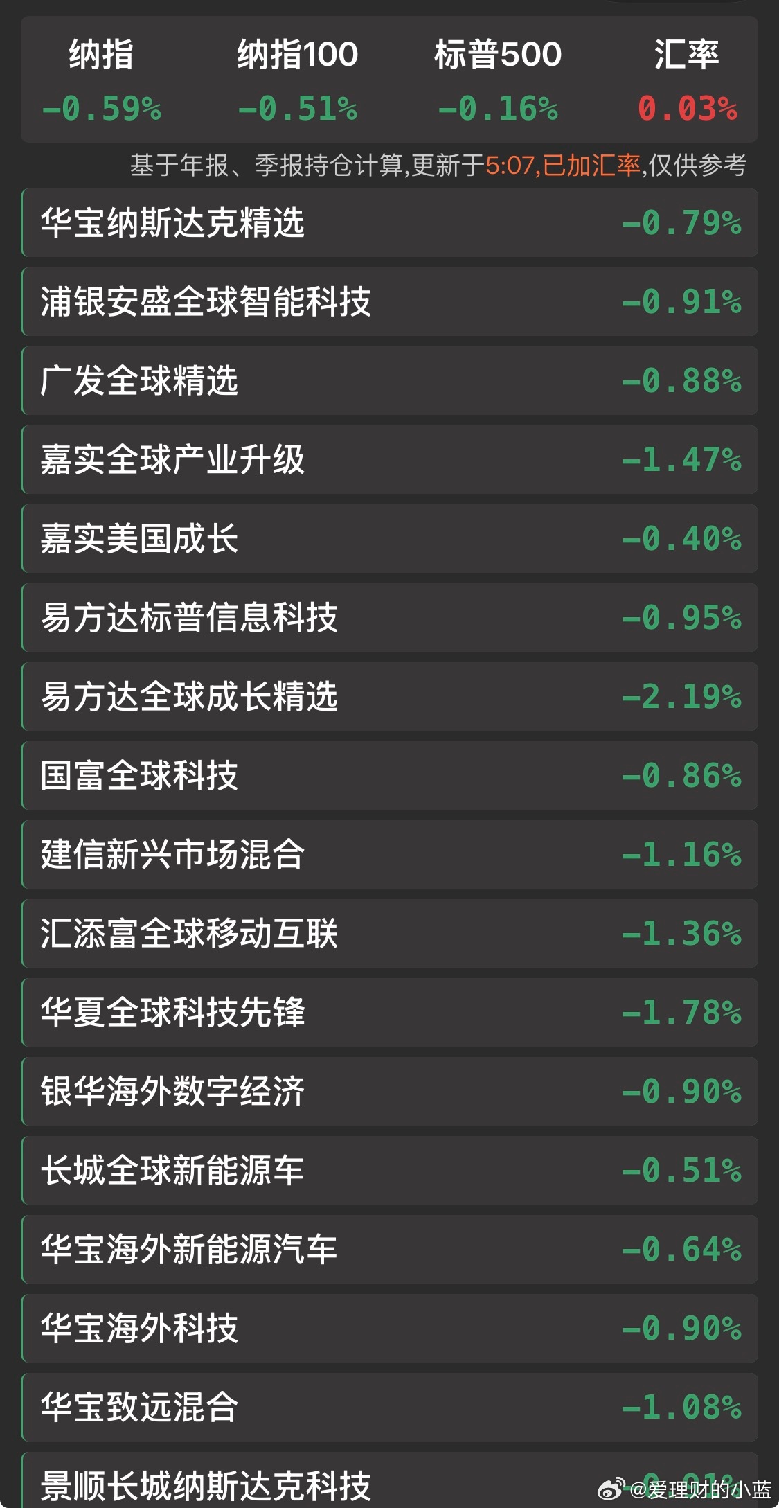 热门美股基金估值更新含汇率。