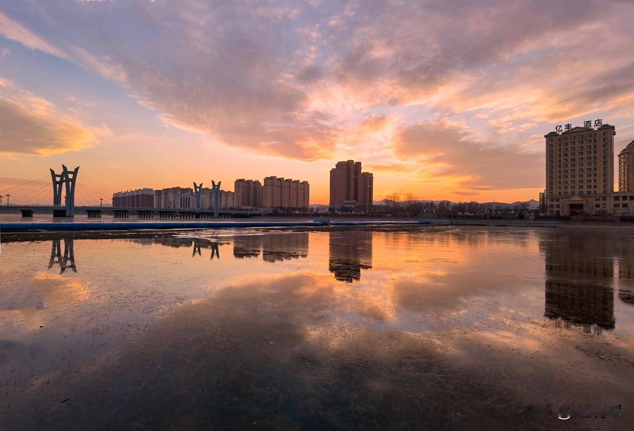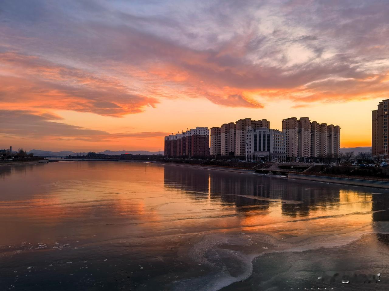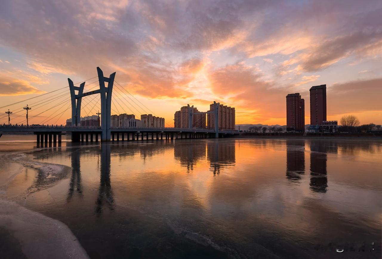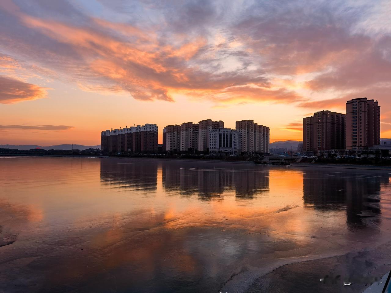 想观赏五颜六色的晚霞吗? 晚霞五颜六色?多少有点儿夸张,起码就没有绿色;不过,我倒是拍到了大雪节气时的晚霞,而且,比较壮观。 7号大雪节气。6号阴云密布,两个天象预报软件都说有晚霞,令人不敢相信。那是因为,北方不同南方,冬天晚霞,十分罕见,这么多年,我只拍到过一次,而且效果极其一般。 到了15时,云,薄了许多,还有“扒堆”的迹象;于是,我开始约摄友,一位痛快答应,另一位不仅不去,还把我好一顿埋汰:“大冬天哪来的晚霞?我看您是想晚霞想疯了,你也没看看云层该有多厚”! 我们二人没管三七二十一,拿上手机就奔水上公园,并根据云的位置选了机位范围;霞光没出现前,我俩就先拍蓝天白云。 . 15时58分,西方的天际线开始泛红,我和摄友兴奋极了;时间来到16点时,天空西南的云率先红了,马上定格了照片1;接着向南小跑10几米,拍摄了有落日处霞云的画面,照片2,接着拍摄了正西方的霞光,照片3;考虑到把最亮最红的落日处“坐落”在建兴桥右边两个斜拉梁的正中,即刻调整角度和机位,拍摄了照片4。 要不怎么说“冬天天短”,今天拍摄时进一步发现,太阳从东南升起,从西南落下,比照夏天“正东出正西落”的弧线轨迹短了很多;也正因为如此,天空西北方向虽然也有云,但因离太阳太远,基本还是原来颜色;而霞云的最红最亮处在西南、其次是正西。 于是一跃上桥,在桥东拍了居中对称构图的照片5后,迅速来到桥南侧的人行步道上,采用不同角度和不同景别,依次拍摄了桥南的壮观晚霞,照片6、7、8、9;拍摄到照片10时,霞光淡了下来,于是把广角模式改为1:1模式拍摄了照片11,因此霞光又红又亮起来;照片6照片9的红、亮程度超过其它张,也是因从“广角改为1:1”模式拍摄的结果;拍摄到照片12时,天色暗了许多,霞光更淡了。 欣赏提醒:霞光的倒影部分不是以往的水面,而是刚刚结冰的冰面,冰面倒影,我看是别样的美。 未发照片:实际拍摄时,照片1之前、照片12之后,仍拍摄多张“霞光由普通云彩渐红渐亮”照片和“霞光渐渐退去”的照片,限于篇幅,才选出这12张既红又亮的代表性照片。 友情提示:冬天的晚霞,持续时间特短,从见红到退去(照片1~照片12)前后也就是5分钟左右,绝不是夏天的持续20~30分钟,因此,不能等夏天的最红时刻,下手一定要快。