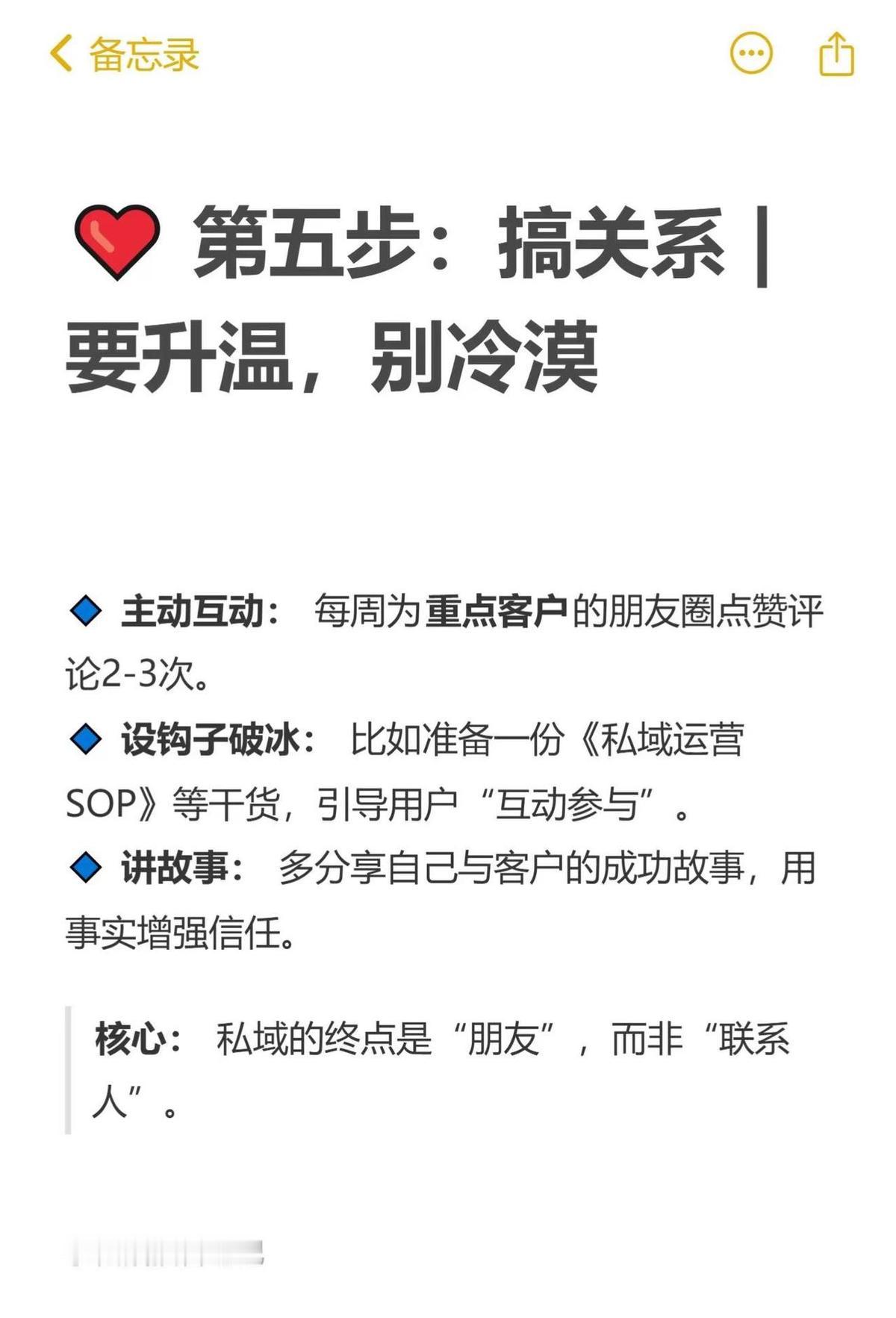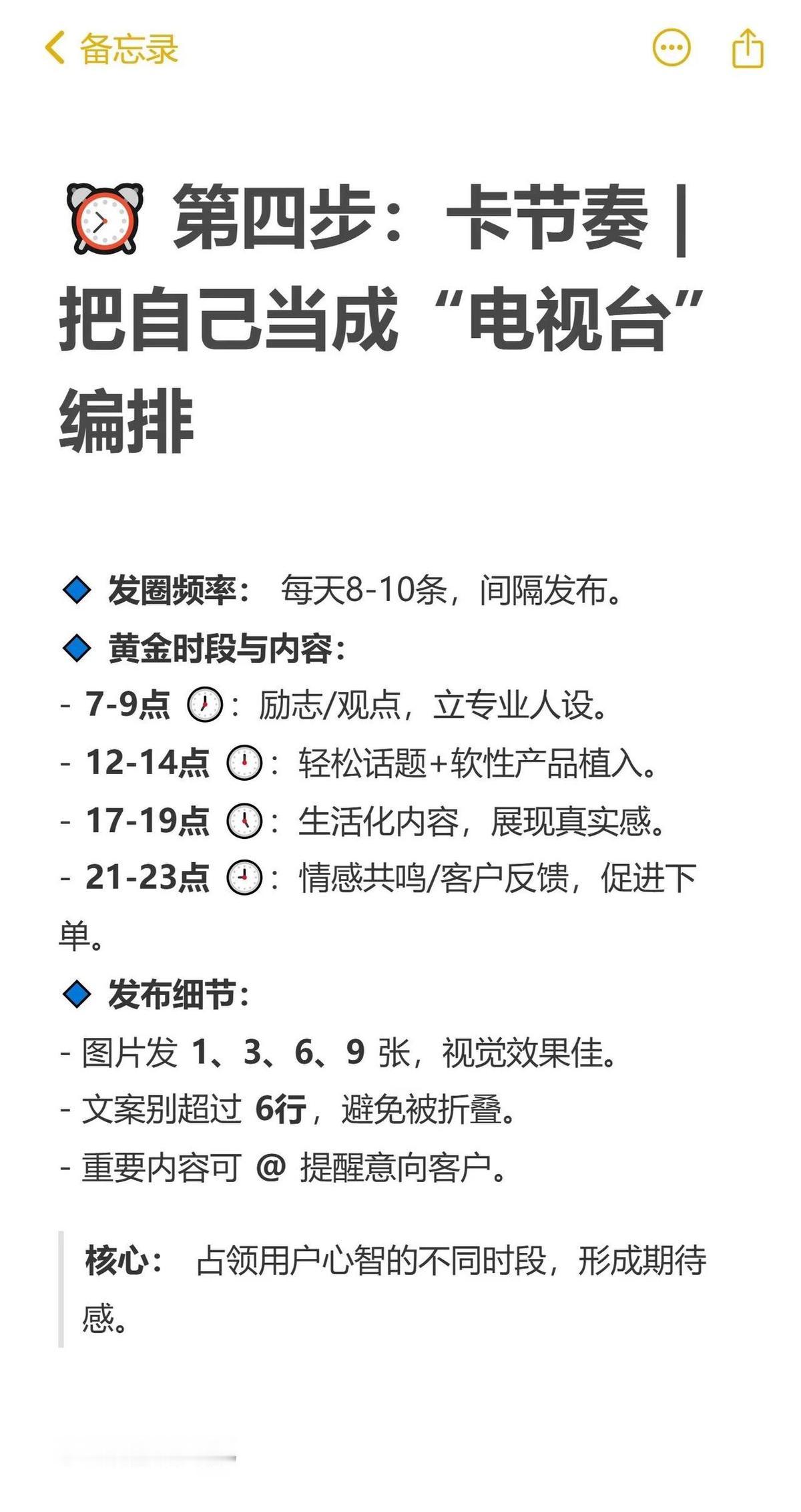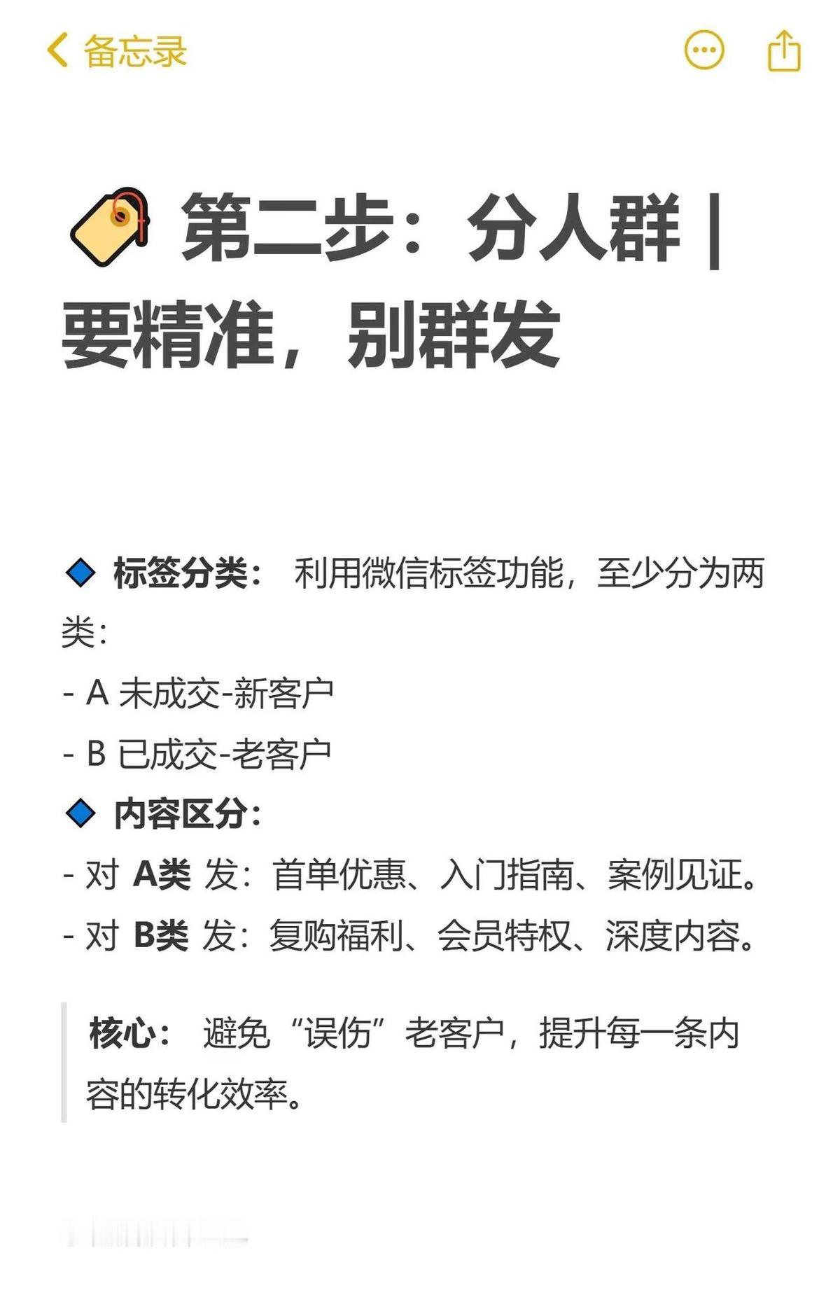 别再发朋友圈广告了。 你每发一条,就在逼一个人拉黑你。 私域流量的真相是,没人愿意为刷屏买单。 最高效的模型叫“三七法则”:七成力气分享你自己,三成力气展示产品。 当你的生活、观点、专业成了主线,信任会自动变现。 2023年的破局点在视频号。 一条产品测评短视频挂上朋友圈,用户停留时长激增40%,转化率比干巴巴的图文高出25%。 动作要快:用视频号种草,用朋友圈收割。 发布时间是伪命题。 你的用户睡前刷手机,你就21点发;你的客户午休摸鱼,你就12点发。 盯着他们的时间,而不是网上的黄金时段表。 发九张精致摆拍,不如发一张有故事的随手拍。 在文案里埋一个悬念,在评论区里抛一个问题。 互动不是技巧,是给用户一个为你停留的理由。 商业的终极形态,是成为值得被信任的人。 最高明的销售,从不需要推销。