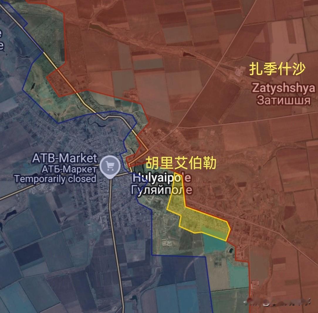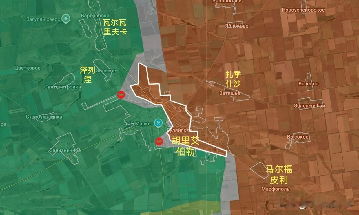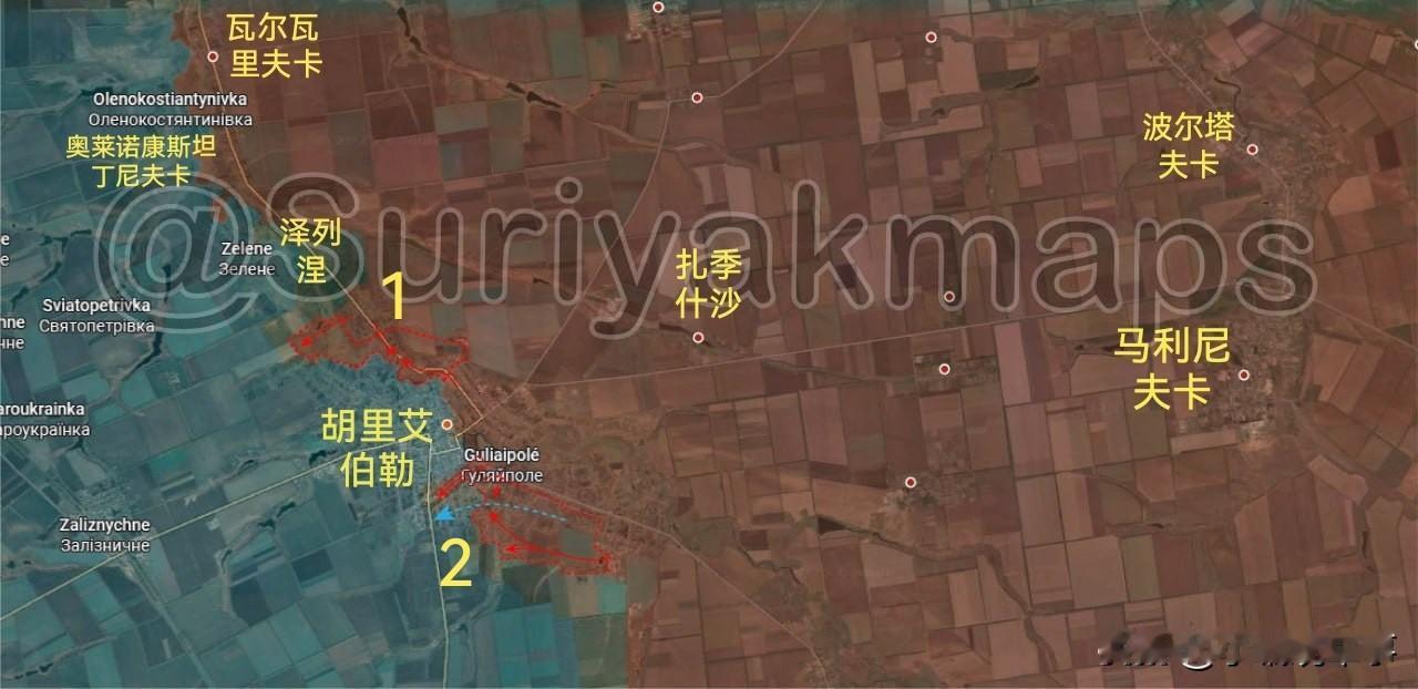 一些TG信源更新了俄军在扎波罗热州胡里艾伯勒市的进展图情况。