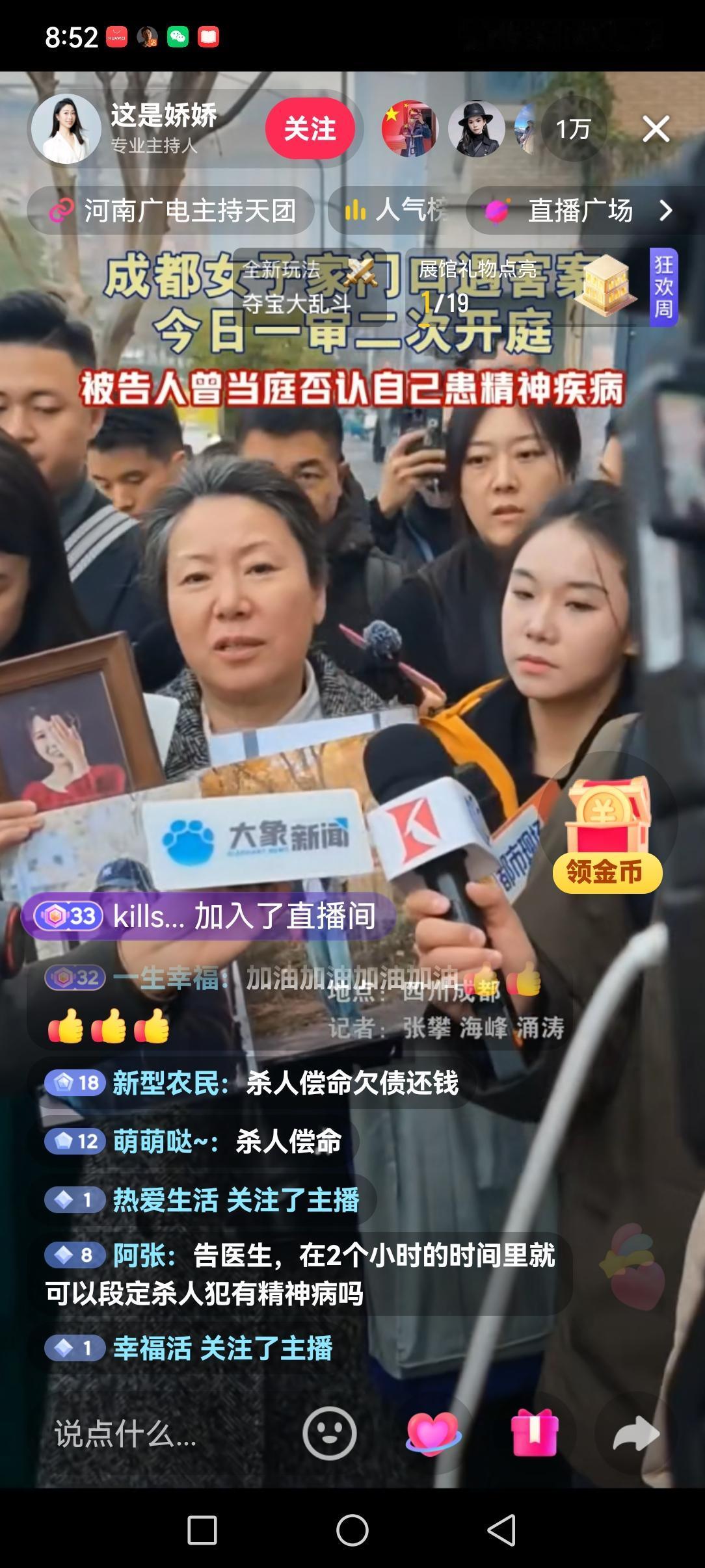 成都紫雅的官司今天一审再次开庭了! 紫雅妈妈说,被告人说自己是正当防卫,她坚决反对。 因为被告人是敲开她家的门,带着工具登门入室做的案。 家是避风的港湾,是最安全的地方,去家里伤害她的家人,还说自己正当防卫法律也不会认可的。 紫雅妈妈还说了一件事,她看到女儿被害后。 好心邻居告知她被告人家的单元门牌号后,她找到被告人家里,任凭她怎么敲门,被告人的父母都闭门不出。 他们还打了报警电话,说紫雅妈妈骚扰他们,打扰了他们的生活,要求拘留紫雅妈妈。这让紫雅的妈妈非常受伤,觉得被告人家属一点歉意都没有。 对于被告人是否有精神病,紫雅妈妈也很质疑。 不知道这个案件会不会反转,精神病能不能被判S刑,让我们拭目以待?