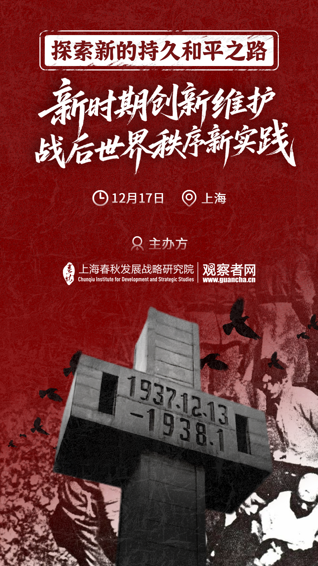在此背景下,由春秋发展战略研究院、观察者网联合主办的“探索新的持久和平之路:新时期创新维护战后世界秩序新实践”国际研讨会,将于12月17日在上海举行。会议将从有效激活《联合国宪章》“敌国条款”这一具体路径入手,探讨如何构建新的国际共识,推动形成创新维护战后世界秩序的新实践,以捍卫二战胜利成果与现行国际法体系。