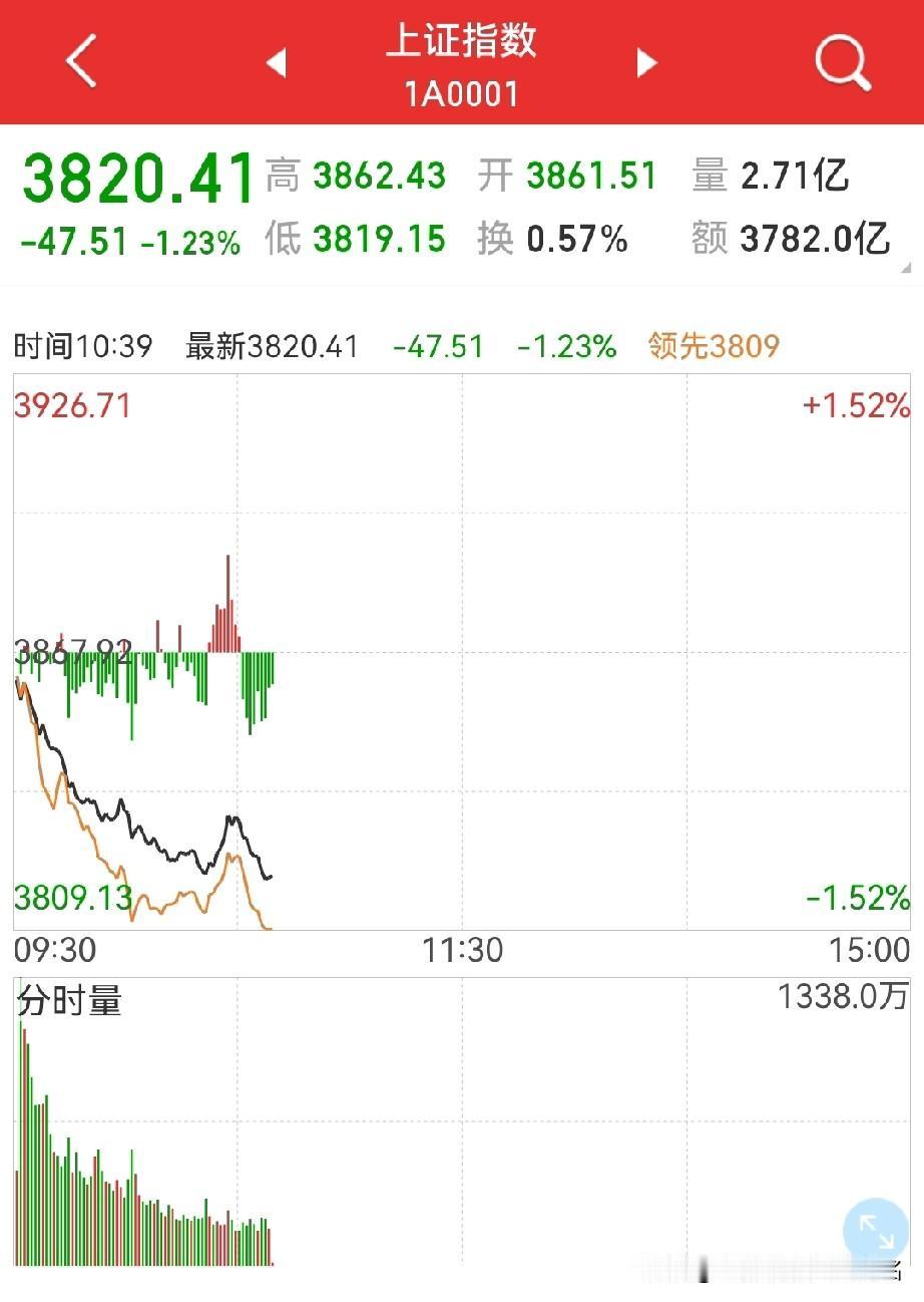 今天能不能拉起来? 这个很重要!不然,可能就得奔3750点去了… 今天的下跌,在昨晚写帖子时有预感,只是美股没跌什么,日股和港股却不淡定了。 特别是港股,今天开盘一个劲儿砸,当然大A也没好到那里去。 如果今天上证不拉个大长T,那么明天3800点概率不保。 接下来,可能就是小阴线慢慢向3750点左右去,等待日元加息落地,从而大A也形成一个重要的阶段性底部。 反之,如果拉个大长T,那么将形成一个中短期双底。 老股民个帐户也开始翻绿,还有70个点,-2%?抗住吧。
