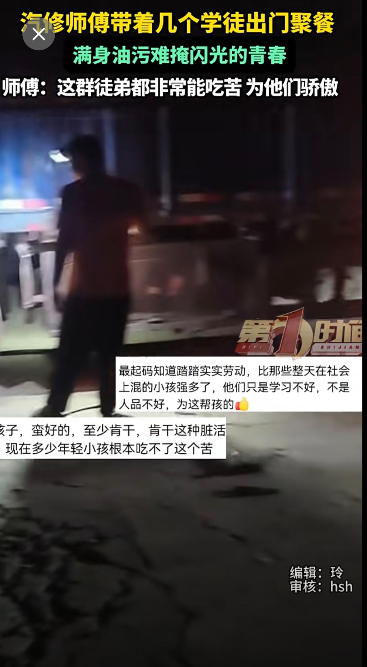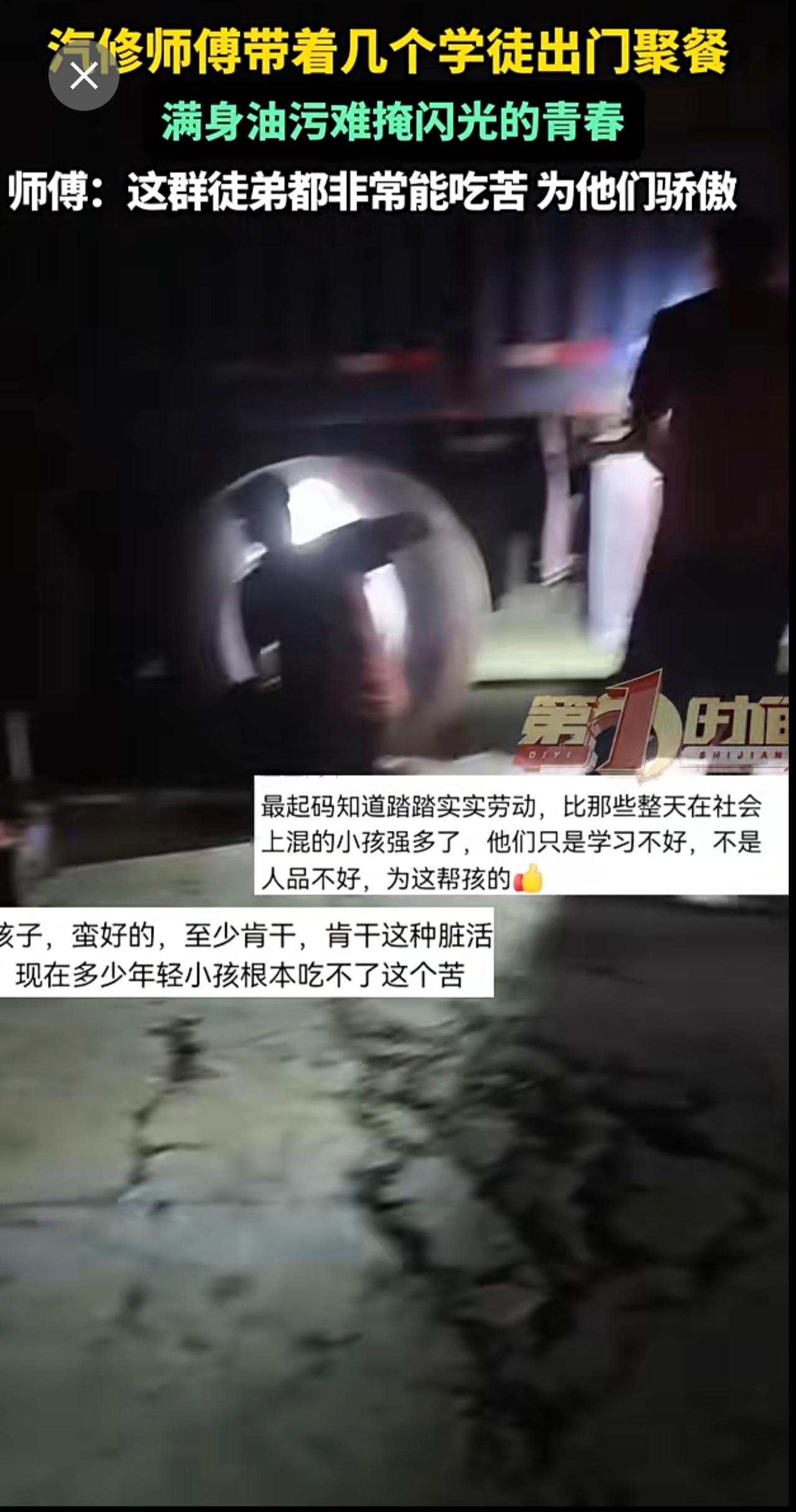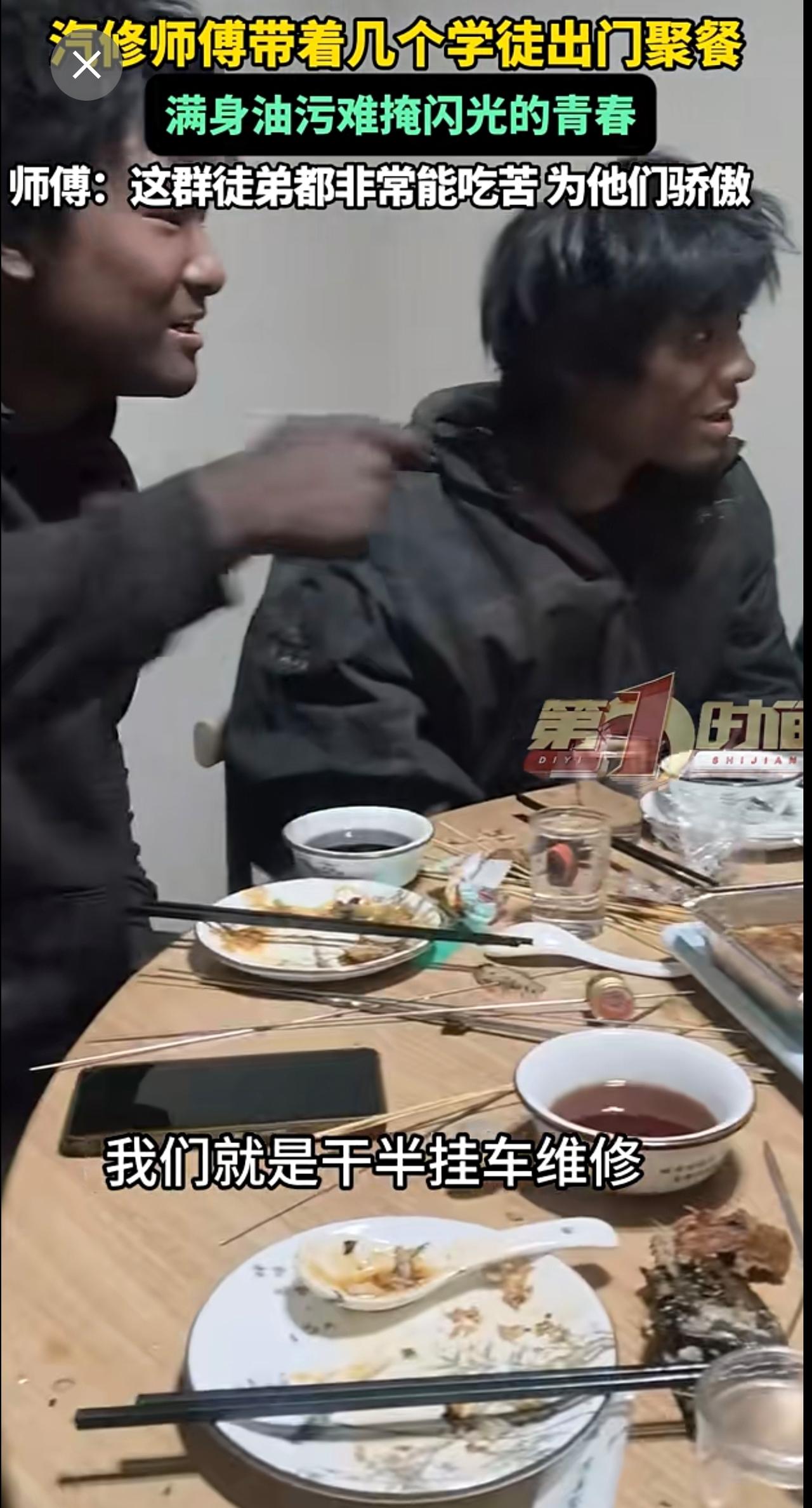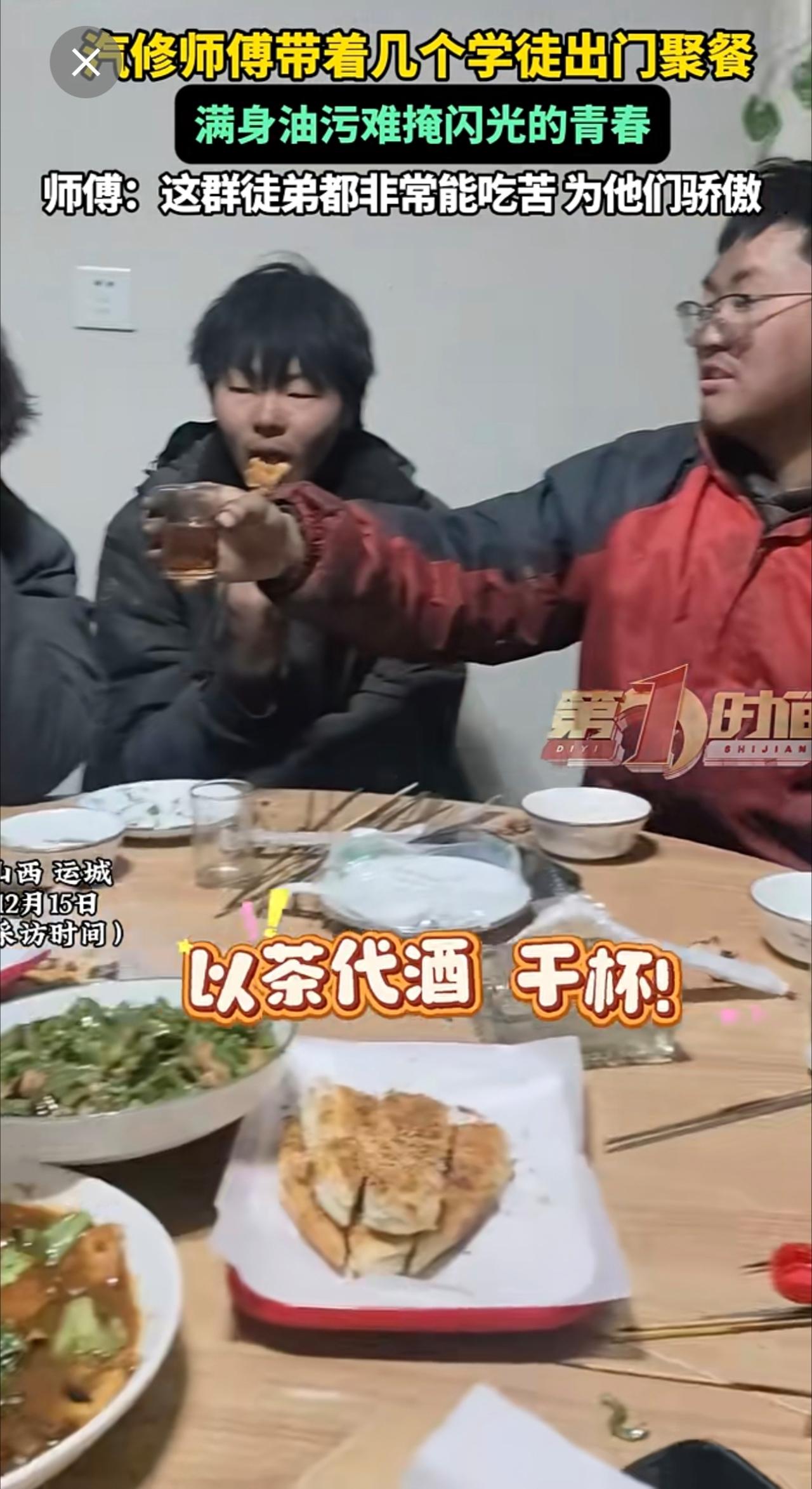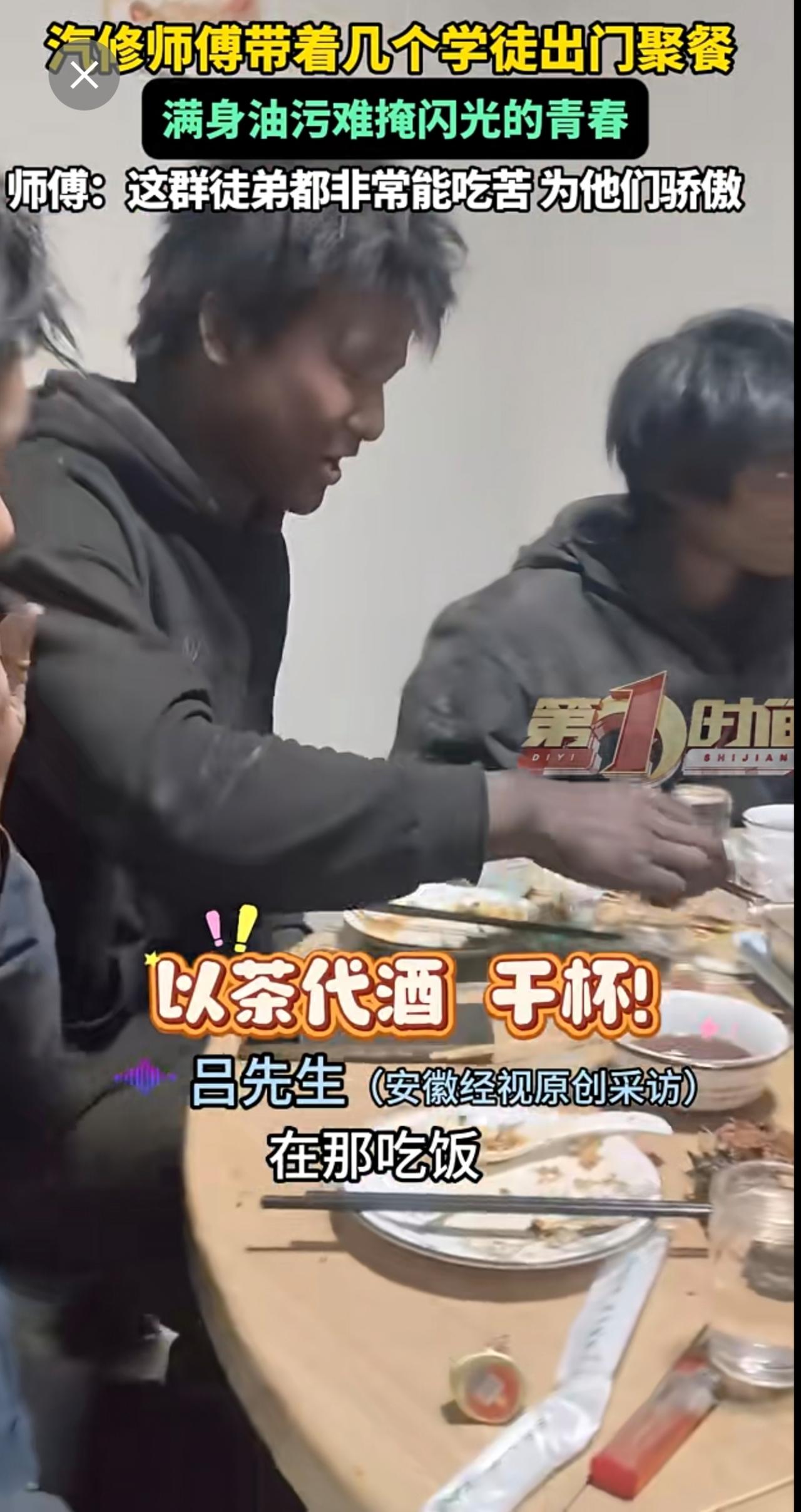 汽修师傅带着几个学徒出门聚餐,满身油污难掩闪光的青春,师傅:这群徒弟都非常能吃苦 为他们骄傲(AHTV第一时间)