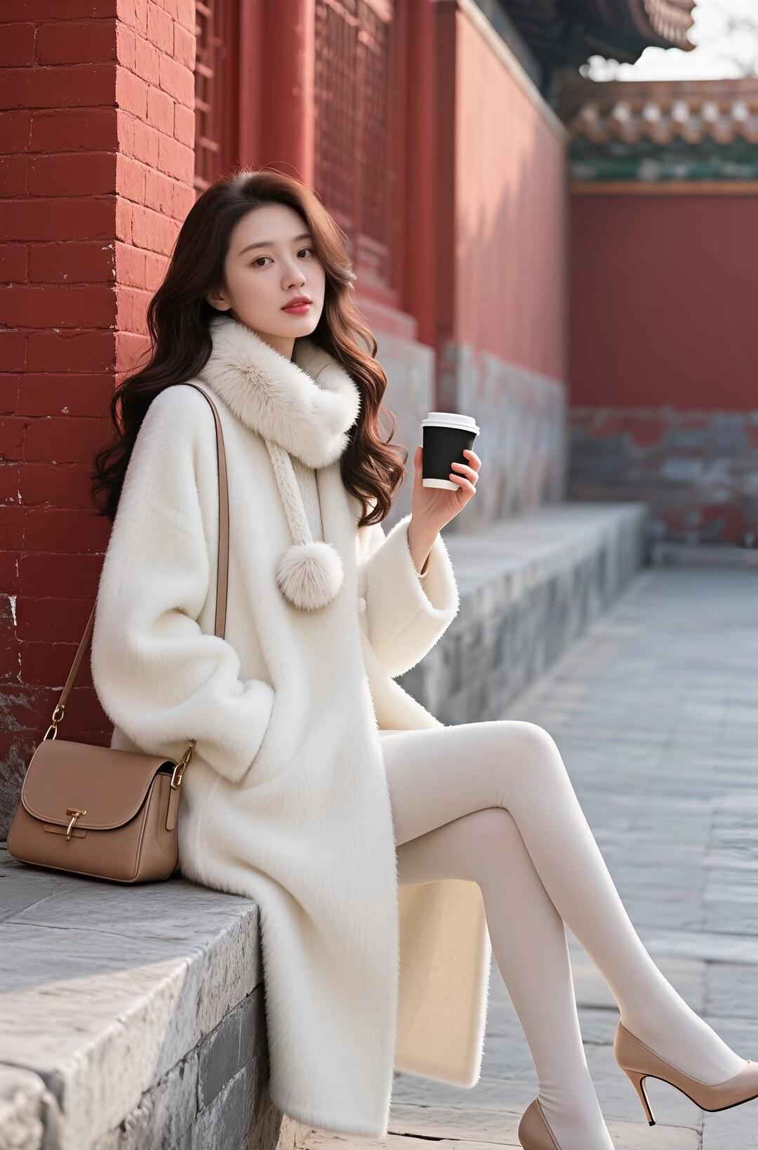 冬日暖阳下,红墙边,一杯咖啡,温暖时光。