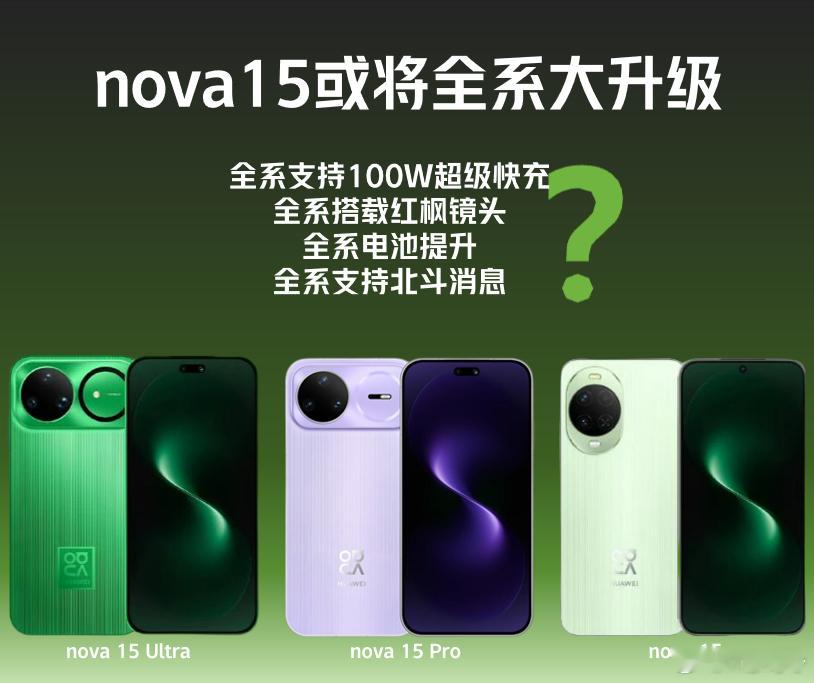 华为nova15或将搭载前后置双红枫nova 15系列预热杀疯了!全新主打色搭配横向双圆镜头模组,期待直接拉满!结合外围爆料,我猜nova 15系列这是要把nova 14系列的王牌——红枫镜头搞成前后双红枫镜头了,而且极有可能全系搭载红枫。既然影像升级了,那其他综合体验方面估计也会迎来大升级,综合配置上,推测其将延续并升级nova系列轻薄机身设计,还可能配备金属中框提升质感,据说这一波强上加强,产品力全面回归,可以称得上是超级nova,你对nova 15系列有哪些期待?欢迎评论区一起讨论!华为nova15有望迎来全系大升级