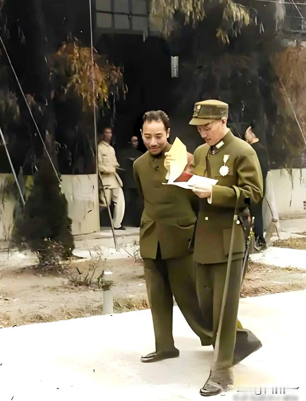 一九四三年,重庆,在中美特种技术合作所视察的蒋中正,军统副局长戴笠陪同。