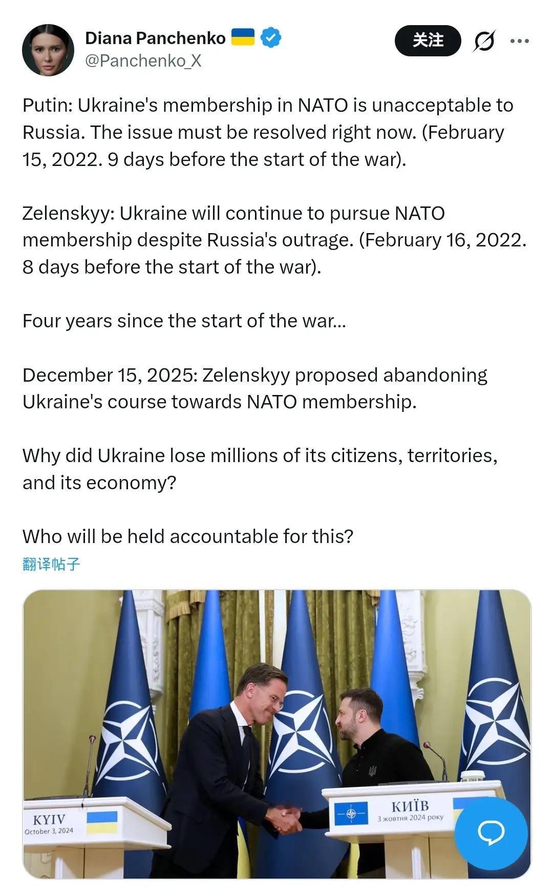今天应该是乌克兰最愤怒的一天,网上已经少见叫嚣的车力巨人,四面八方都充斥着乌克兰人民的愤怒,不是说他们还想加入北约,而是普京的红线,几年前就划在哪里了,泽连斯基偏闯,四年后国家不复存在,做了几年的梦,一切妄念归零,回到最初的位置! 乌克兰主动投降俄罗斯,西方的债就不用还了。这可能是保留乌克兰的最佳方式,只不过他们转不过弯哈 北约都加入不了,更何况欧盟,至少也帮欧洲牵制了俄罗斯,我想给个名义上的骨头总要的吧,更遑论关乎福利和钱,加入欧盟的提议,更加虚无缥缈,贷款都是拿俄罗斯的冻结资金,还不知道其中能落实的有多少 许多人,许多国家,不会从乌克兰这里领悟出多少道理,即便看到了烏克兰今日的下场,过几年就是过眼云烟,因为大多政客的眼界、心胸、格局、理想、抱负、能力、人格、学识、历史观、世界观…都有缺陷,依然会步乌克兰的后尘。