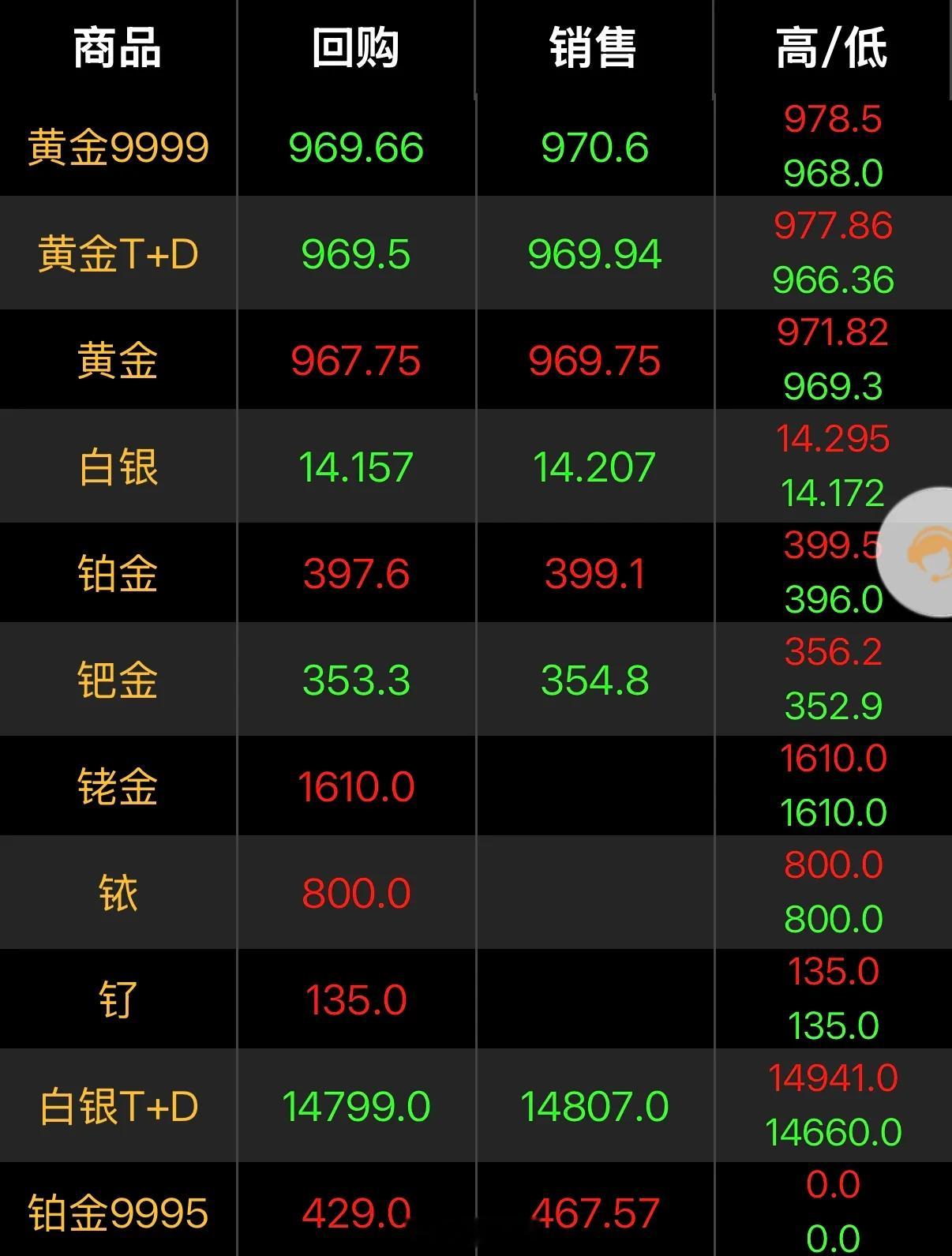 金价失控了?都跑到 970 上下了。还有 1350 的金饰,这也太夸张了 金饰克价涨到1353元 金价