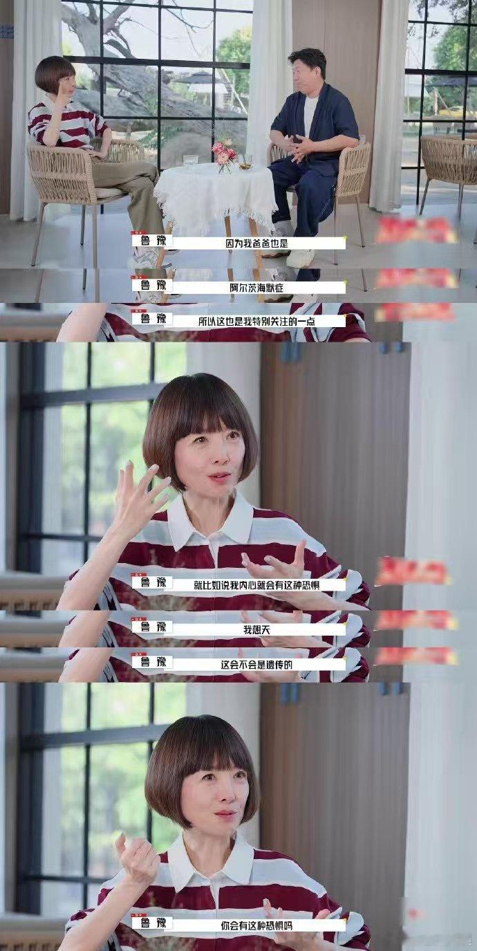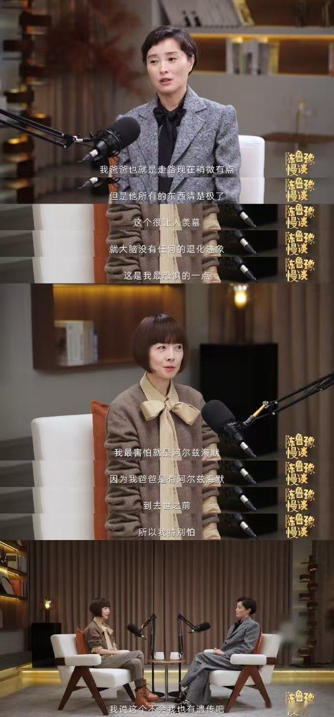 鲁豫自曝最怕得阿尔兹海默 鲁豫在采访里两次提及对阿尔兹海默的害怕,因父亲深受其害。她记忆力超强却仍怕衰退,这恐惧背后,是对失去自我的深深担忧,太让人心疼!