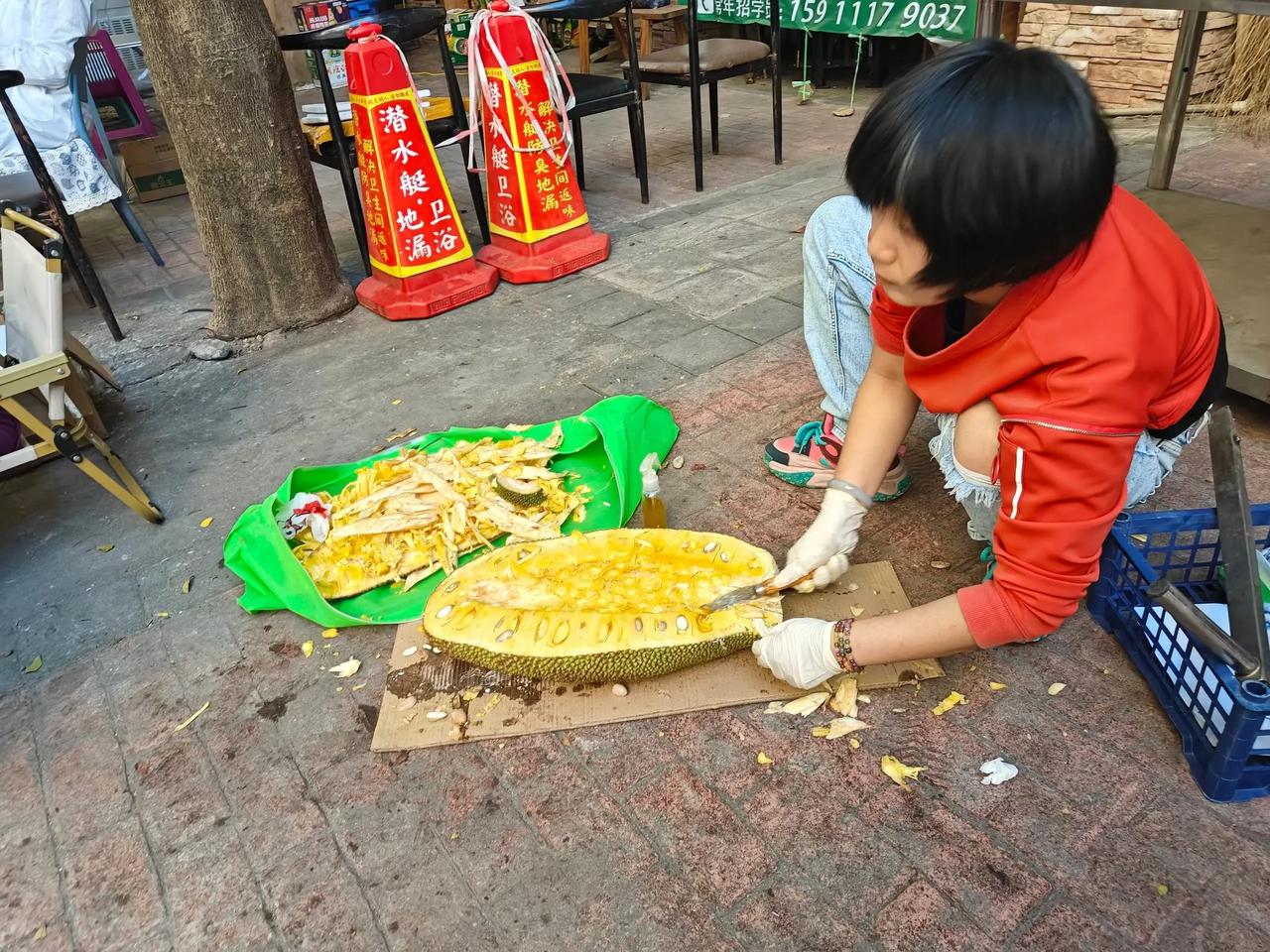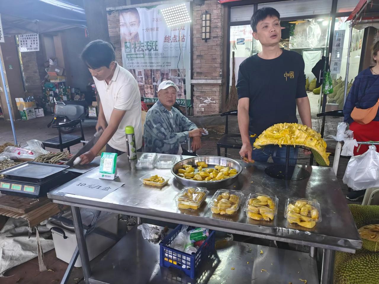 在西双版纳景洪的网友诸君们,今天早上开始,美女大侄女,大侄子在东北街上卖菠萝蜜到了冲刺阶段。 半个月已经卖掉1286个菠萝蜜,一个平均40斤。 现在库存还剩下186个,今天要大放血,打折销售,15块钱两盒。 今天在东北街五期,大侄女大侄子搭建了最强销售阵容,什么科班出身于婶,鹤岗刘妈,兄弟于老二今天都倾巢出动,帮助大侄女大侄子卖菠萝蜜。 欢迎在景洪市,或者西双版纳全域旅居的网友诸君,去东北街上,大侄女大侄子五期摊床,一睹克非家人风采,今天你们可以看到刘妈,于婶真容。 说这两天,有好几伙人过去买菠萝蜜,走到跟前就说,我们是克非老头粉丝儿,也认识于老二。 你肯定是小双吧,克非没说假话,确实漂亮,不买菠萝蜜,过来看你一眼也养眼,话说回来,来了能不买吗。 小双说,给叔捡大的装。叔说,你慢点装,让我多瞅你几眼。 网友诸君,抓紧去吧,东北街上最靓丽的一道风景线,不去,西双版纳你白来了。