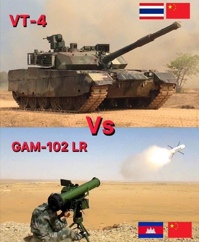 柬泰冲突中的中式武器都有哪些?中式武器上演“矛盾”之争! 泰国偏向多体系协同配置: 陆地装备有VT-4 主战坦克、SR-4 型 122 毫米火箭炮、DT-1G 远程火箭炮。 防空装备有凯山 - 1CM 防空导弹、FK-3 防空导弹。 海上装备071E 型船坞登陆舰、以及6 艘 053 型护卫舰。 柬埔寨因经济实力限制更侧重火炮、反坦克导弹等非对称作战装备: 火炮装备SH-1 型 155 毫米车载加榴炮、90B 型 122 毫米火箭炮、AR-2 型 300 毫米远程火箭炮、81 式 122 毫米火箭炮。 反坦克与防空装备GAM-102LR 反坦克导弹、凯山 - 1C 防空导弹、猎鹰 80 中程拦截系统。 辅助装备科比特 CW5/CW40 无人机、59D 坦克、2 艘二手 056A 型护卫舰。
