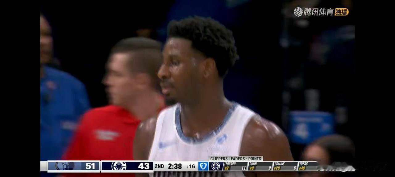哈登带伤出战,快船终于半场不领先了! 灰熊半场56比48快船,伦纳德得到11分!哈登7分! 哈登由于腿部有伤,明显不敢发力,灰熊队将针对性的打哈登这一点! 首节末泰伦卢突然把伦纳德和祖巴次同时换下?这是什么意思?哈登带着替补几个小个打?比分瞬间被拉开! 第二节,博格丹一上场球队崩了,被3J杰克逊直接打爆!无奈只能把一瘸一拐的哈登继续留在场上! 半场灰熊队:杰克逊得到21分!莫兰特得到7分!
