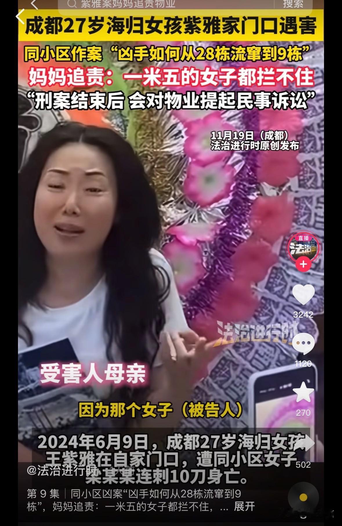 多好的一个姑娘啊!她除了拥有学霸的光环,还有168厘米的身高与温婉甜美的长相!然而,因为一个陌生女人,她年轻的生命永远在家门口被定格了! 这个姑娘名叫王紫雅,她出生于1997年,四川成都人。这么多年的时间里,母亲用尽全力将她培养的很好,她是一个集学业、特长样样精通的小姑娘。 完成学业以后,她坚持回到了母亲身边。母女俩相依为命,一直在为更好的生活打拼。 美好的一切在2024年6月9日戛然而止!那天,在自家门口,年仅27岁的王紫雅被一个名叫梁珂莹的陌生女人杀害。 二人虽是住在一个小区的邻居,但事发前素不相识,更没有半分过节!是梁珂莹来到她家门口敲门、吐口水,从而引发了口角纠纷。当时,过来协调此事的六十多岁保安目睹了一切! 可怜的紫雅,她满腹才华,还那么年轻,本该大展身手迎来自己的幸福时光。如果没有遇到梁珂莹,没有在保安到来以后去开门同她理论,该有多好啊! 经此一事,希望大家明白一点:凡事要多加注意,坚持幸福者退让原则,远离一切行为异常之人。遇事,定要保持安全距离,有问题当及时报警求助![祈祷][祈祷][祈祷][祈祷] 2025年12月16日,该案一审二次开庭。在此相信,等待罪犯梁珂莹的必是法律的严惩!
