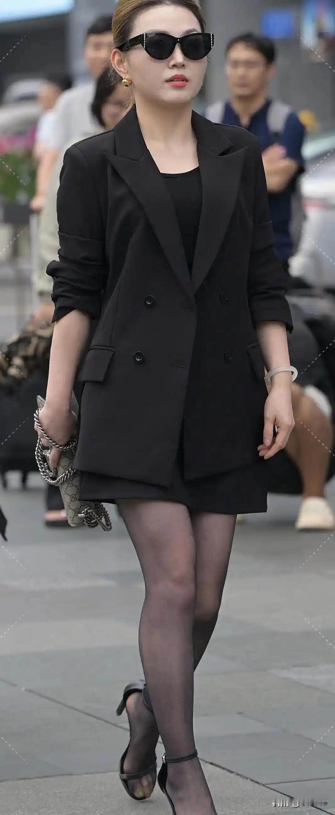 都市丽人风范,黑色西装搭配透视丝袜,自信满满!💄👠💼