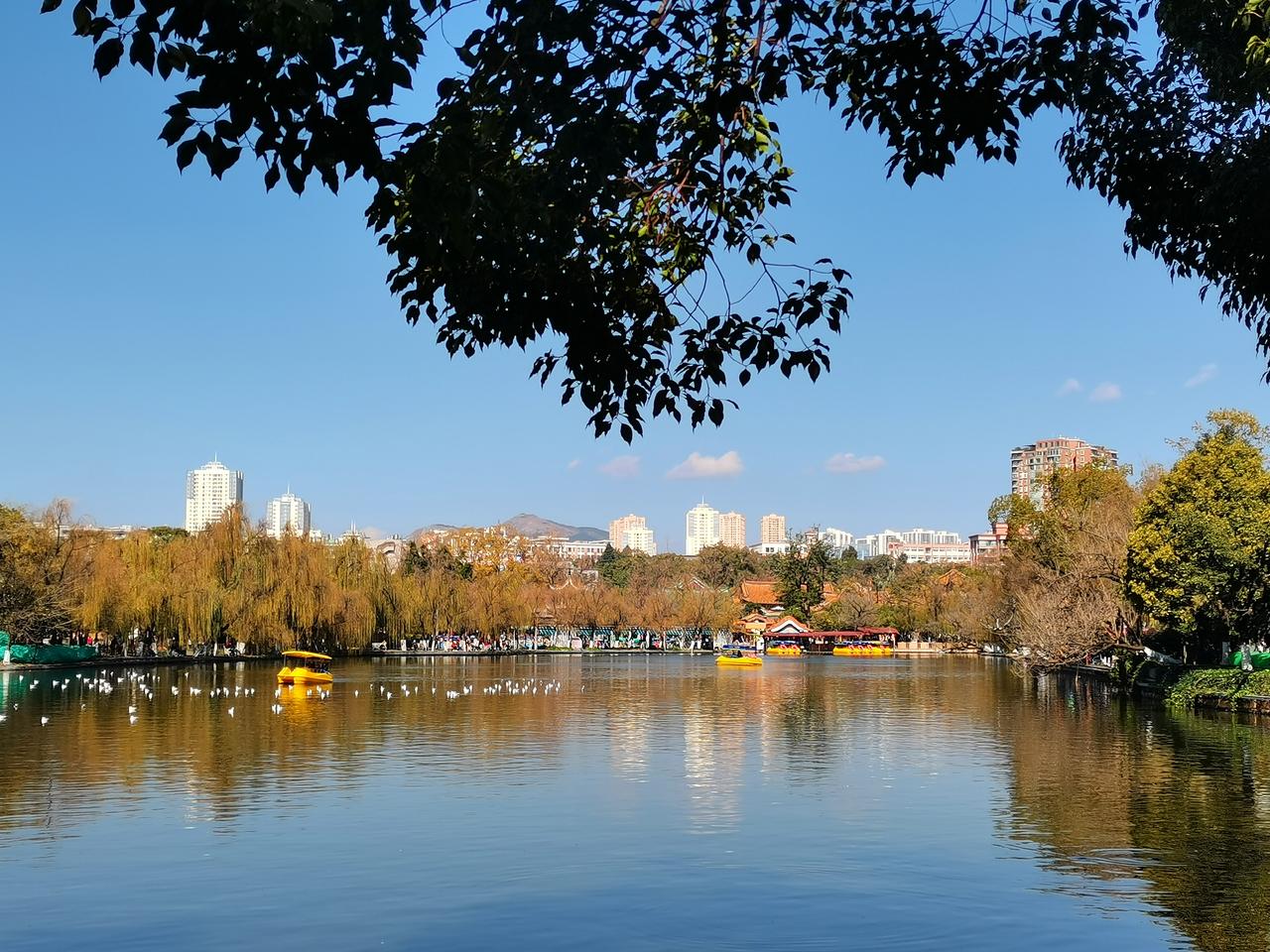 一个北方的游客冬天来到昆明意味着什么?意味着人生观世界观的重塑,意味着几十年形成的思维定势的崩塌。 原来人生是可以这样过的,你不用匆匆忙忙地奔波,你可以在金色阳光的拥抱中放慢脚步享受世界的馈赠。 原来世界是可以不一样的,你可以看到冬天的绿树红花,你可以看到户外惬意享受温暖时光的老人,你也可以看到在鲜花点缀的咖啡吧细啜慢饮的闲人。 原来自己关于冬天的思维是狭隘封闭的,原来有个地方的冬天花不凋,叶不落,水不冻,天很蓝,鸟很多,光很暖。 这个地方就叫作昆明!昆明气候宜居