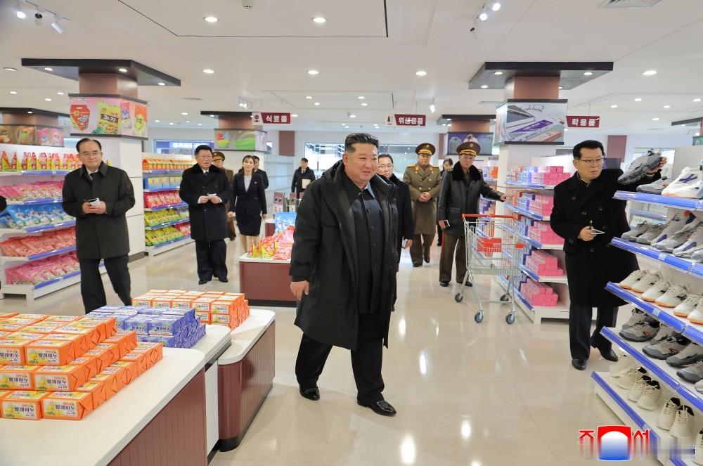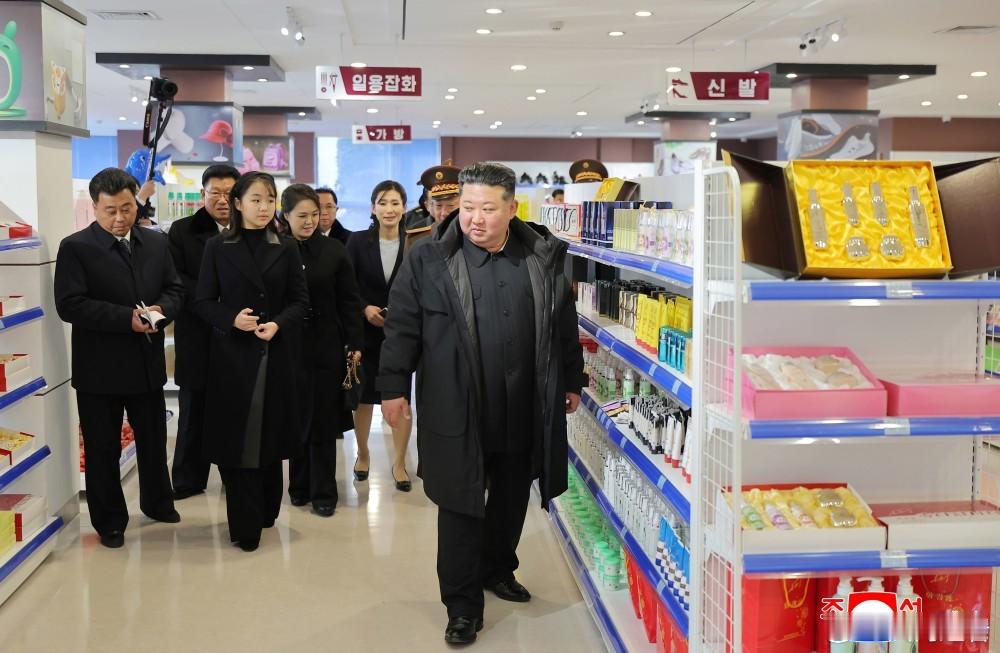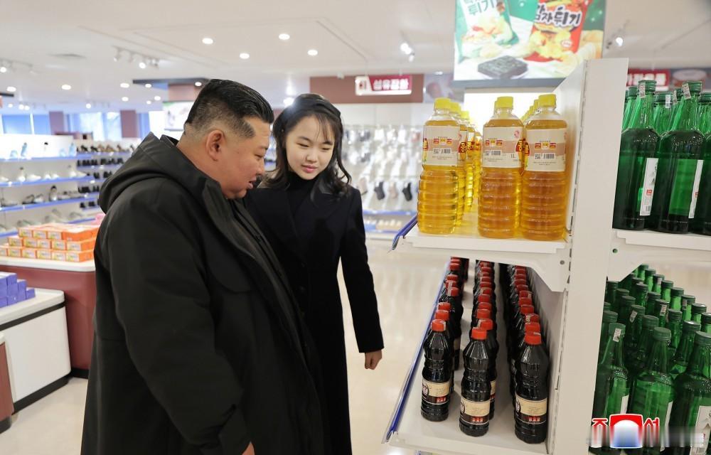 金正恩出席江东郡地方工业工厂和综合服务中心竣工典礼女儿金主爱陪同逛了一下超市,卖的生活物品。朝鲜朝鲜