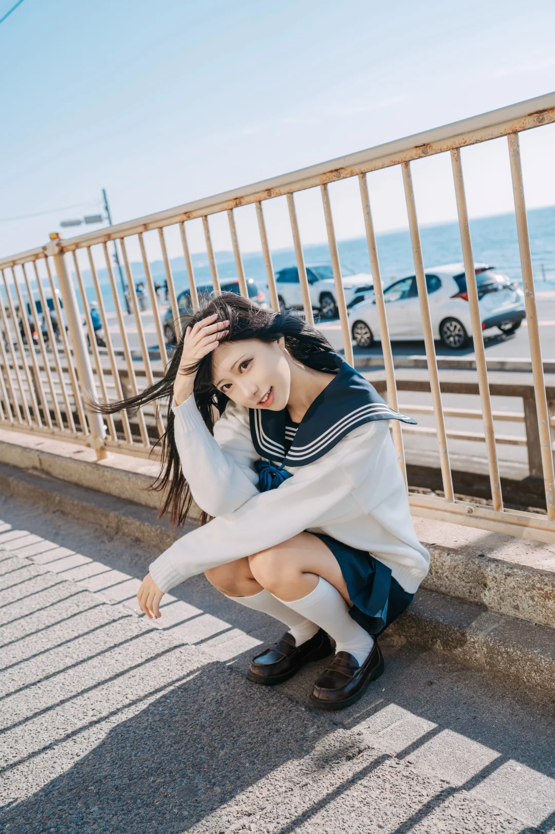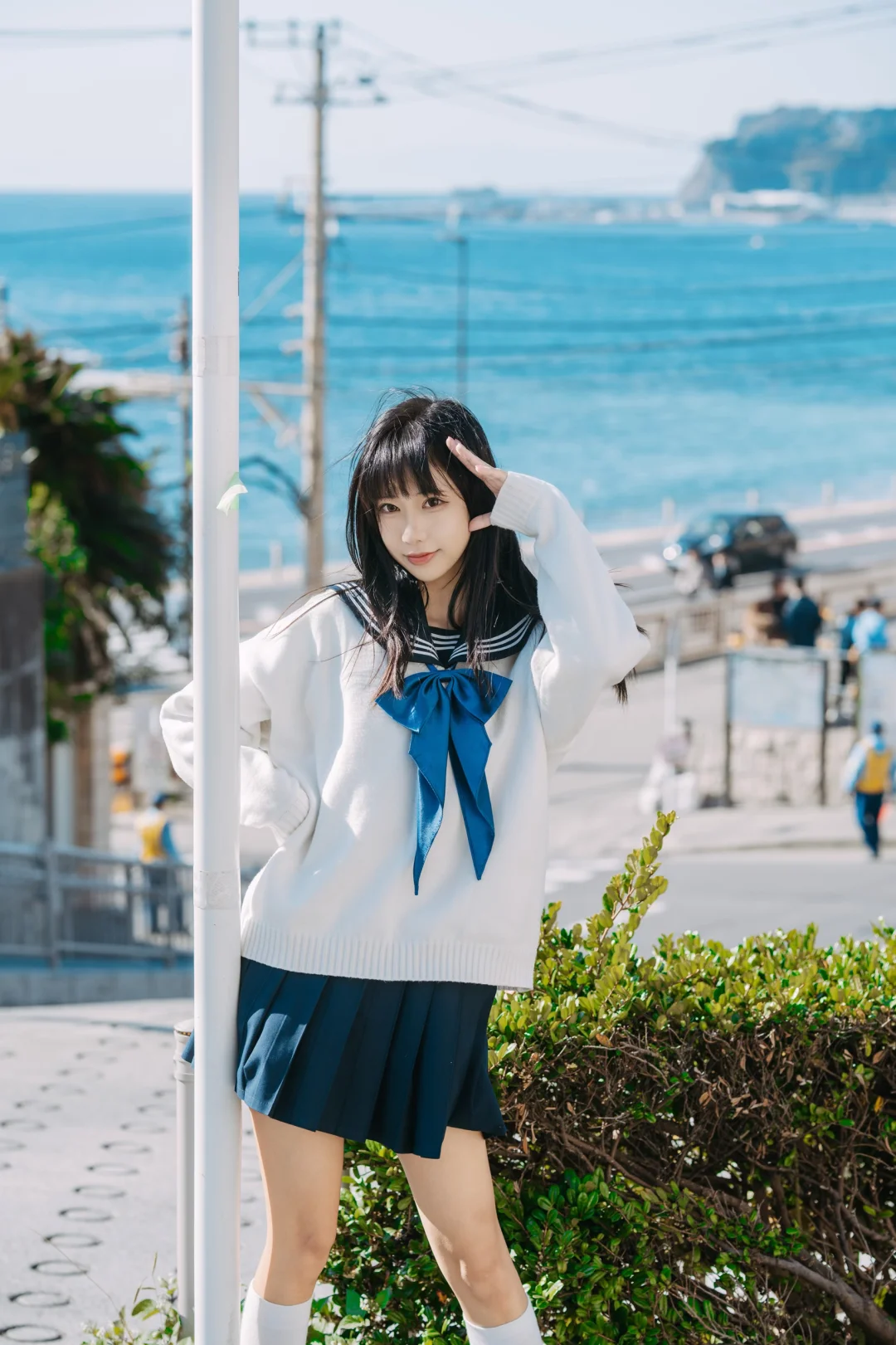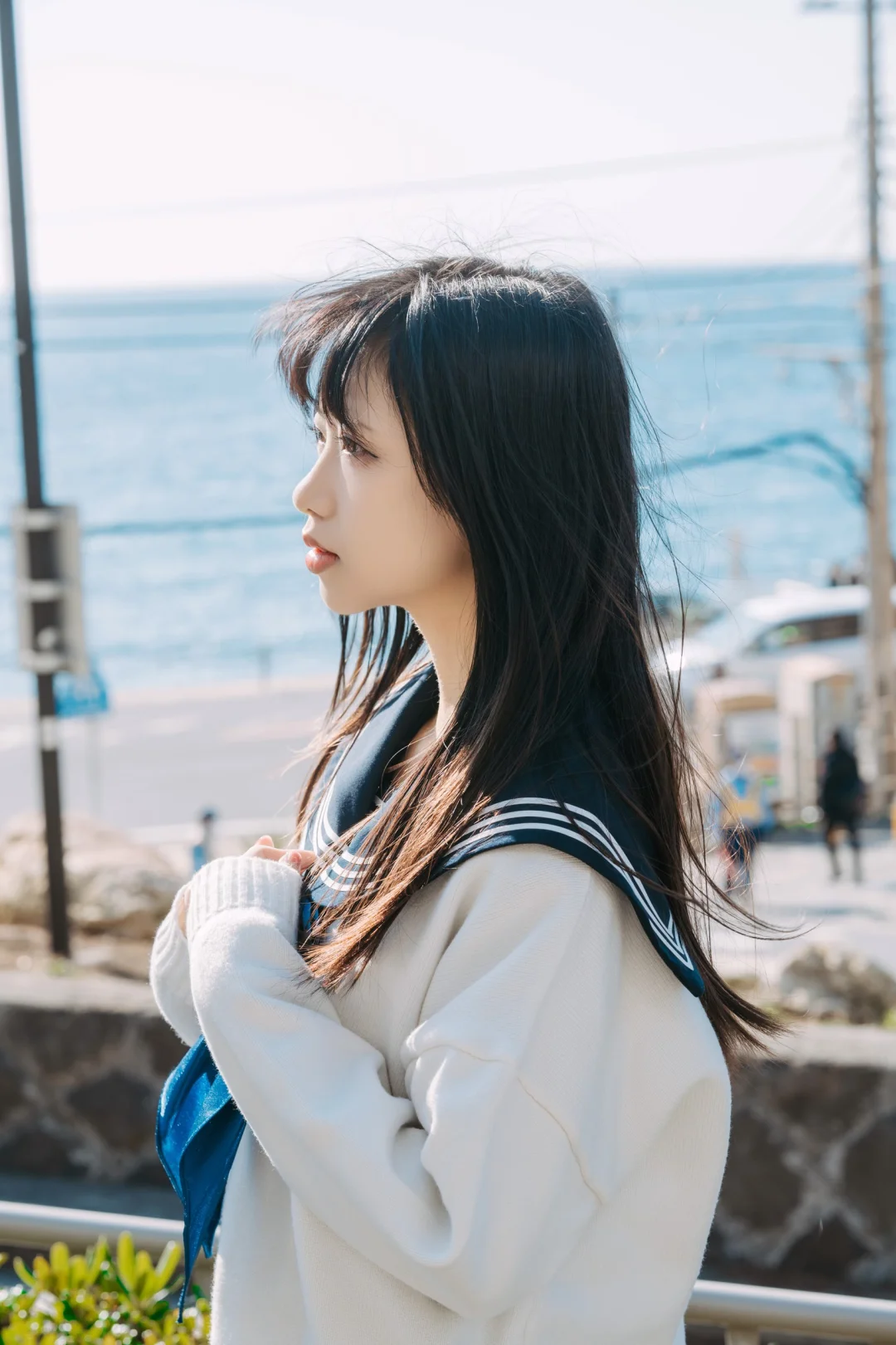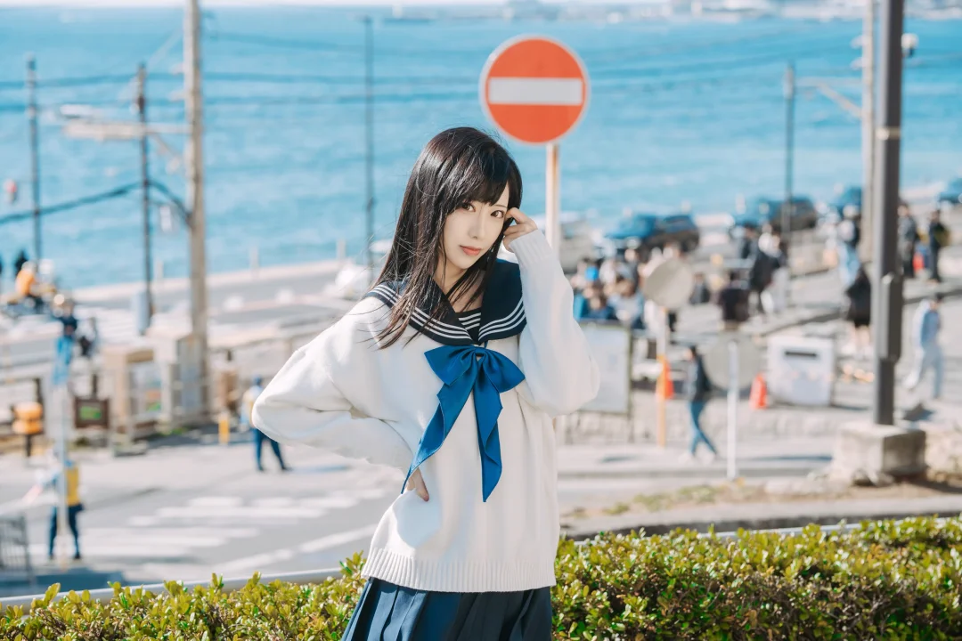 [一R]站点上坡路段:车站出来会看到一个上坡路,找个地势稍高的位置,能拍到电车+海岸线同框,还能避开人群!