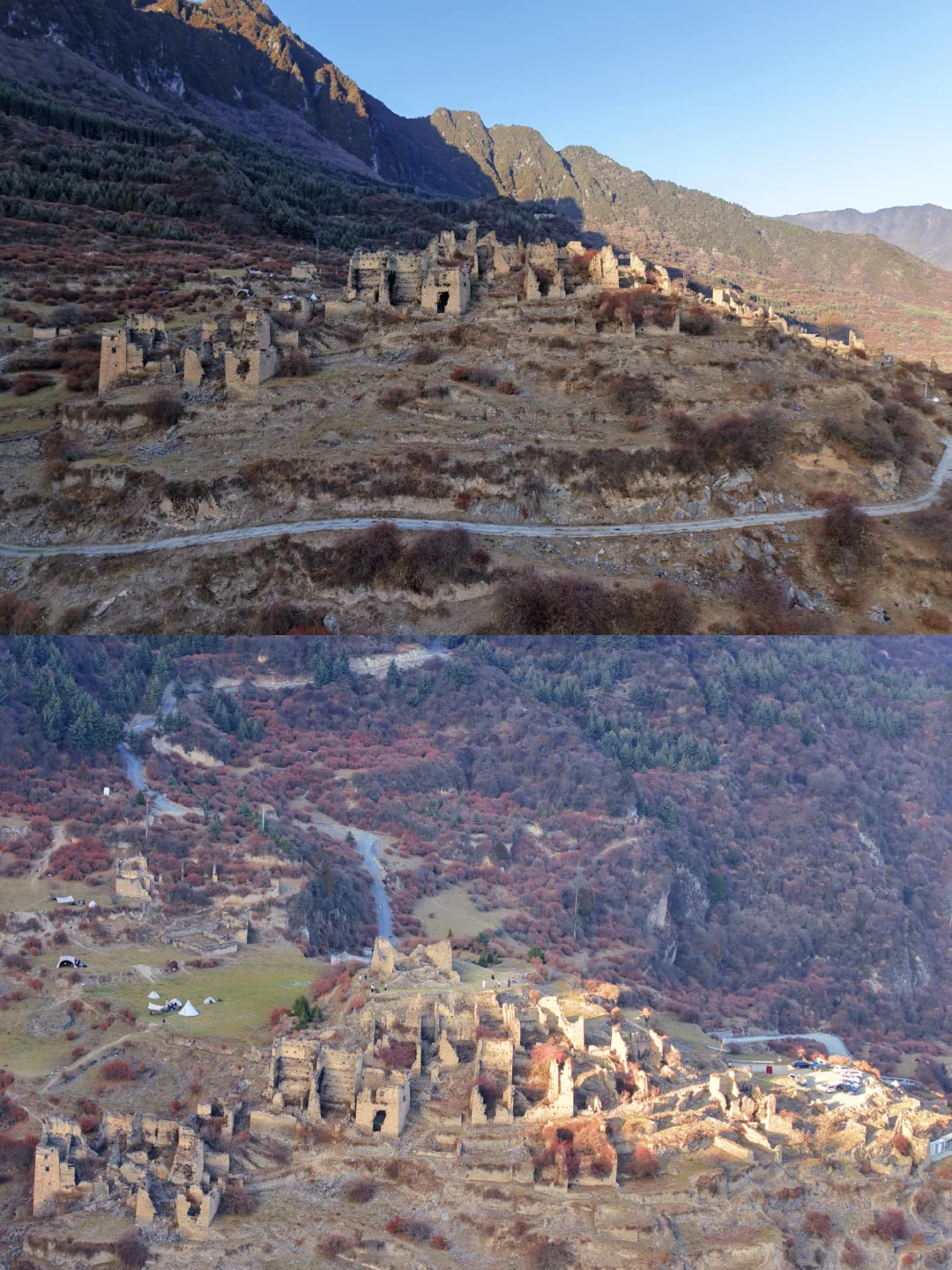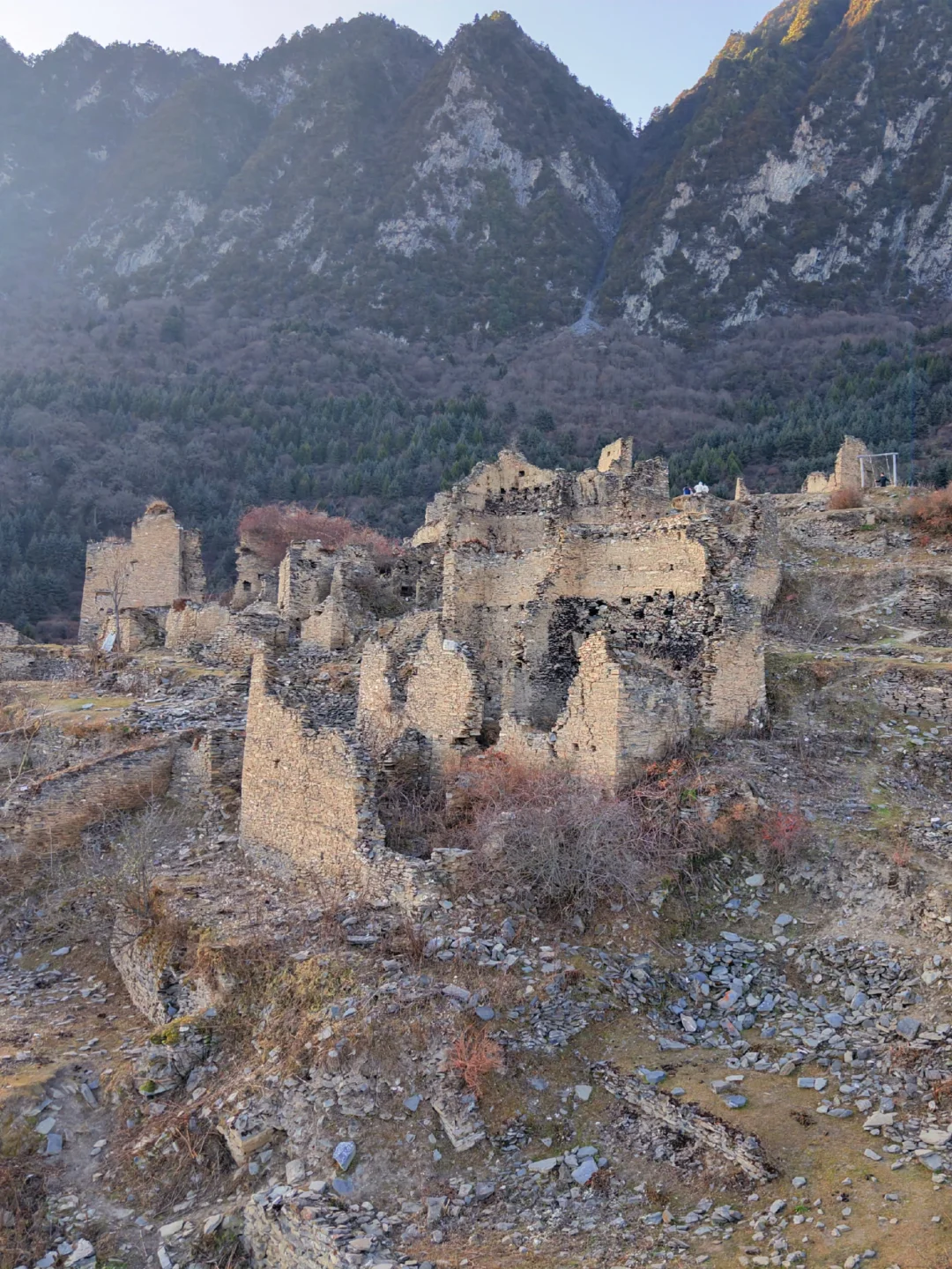 这里被誉为“川版马丘比丘”,石头堆砌的房屋残垣断壁,独特的窗洞等,有种被时光珍藏的美感。