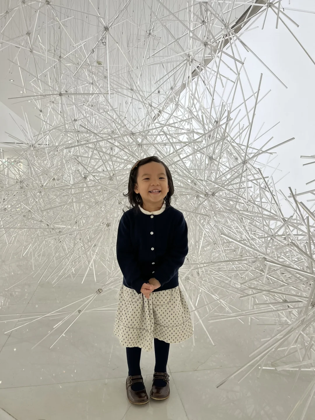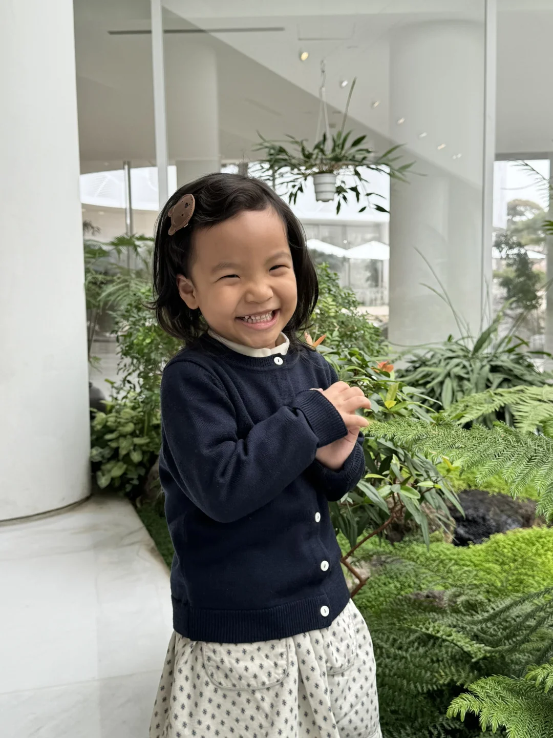 室内蛮热,我们穿的针织开衫,内搭磨毛白色打底,开衫穿脱方便,很适合这里的整体氛围。