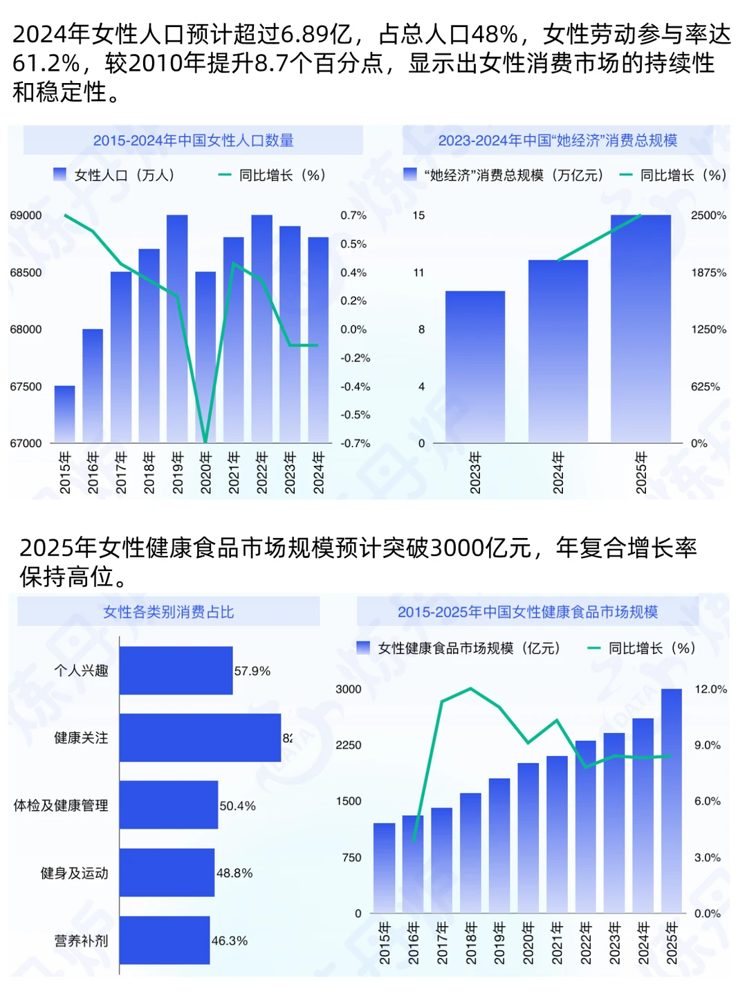 “她经济” 持续爆发,女性健康食品市场年同比增速保持高位,成为消费升级核心赛道。[派对R][派对R]