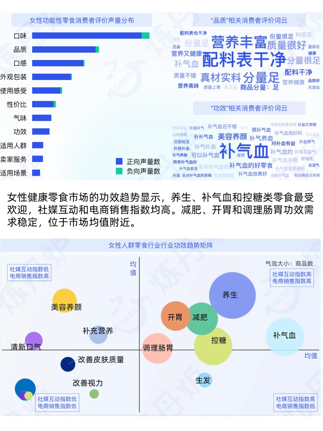 功能性零食赛道表现亮眼,富铁软糖、五红糕、低卡饼干等品类热销,
