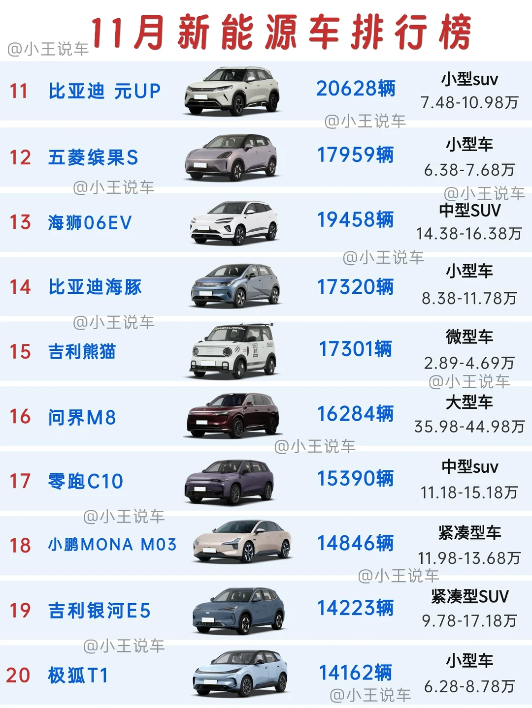 11月新能源车型杀疯了!单月卖132.1万辆,新能源SUV单月销量78.6 万辆,占SUV市场62%,自主车企直接霸榜,外资车几乎跌出前十~