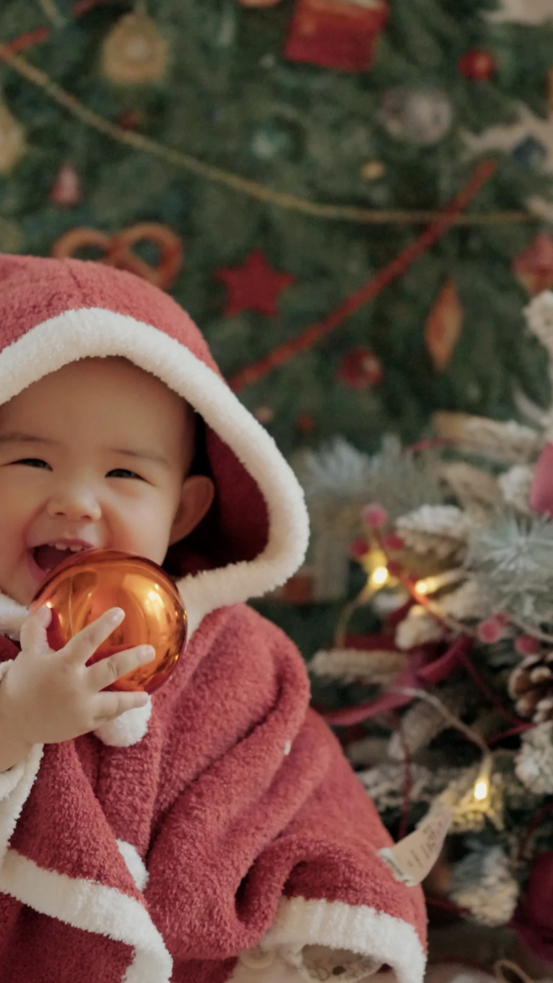 2️⃣让宝宝和球球、圣诞树自然玩耍互动