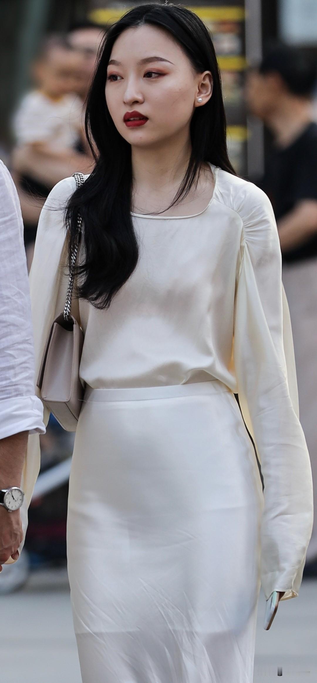 优雅白裙,时尚街拍,回头率爆表!