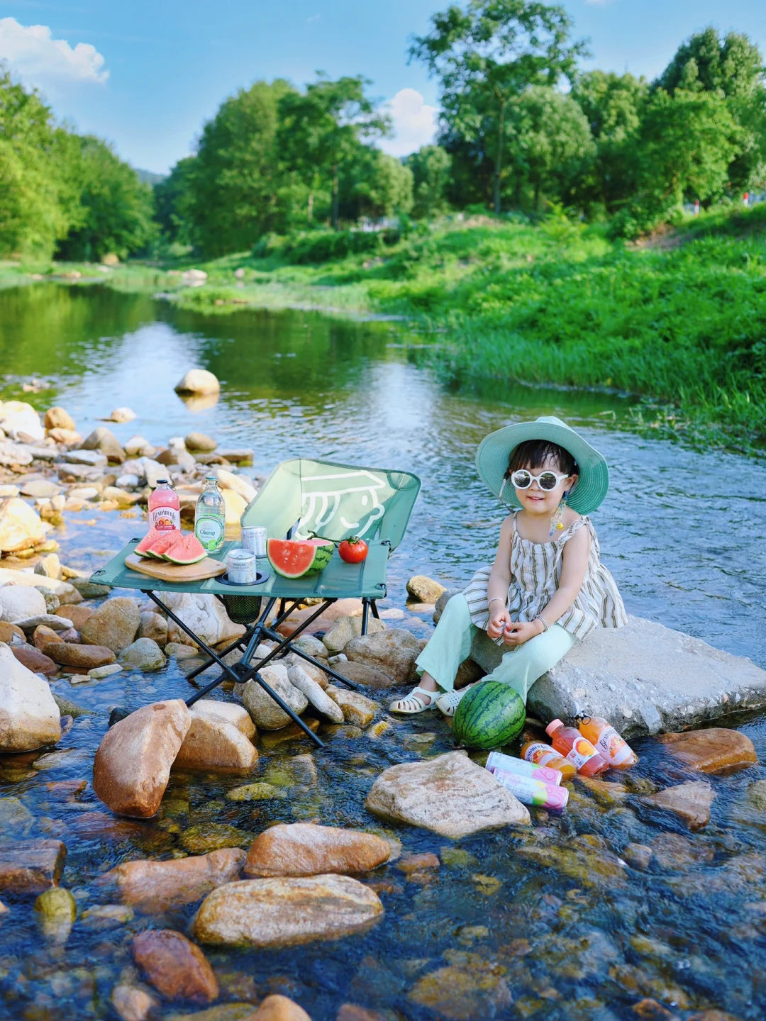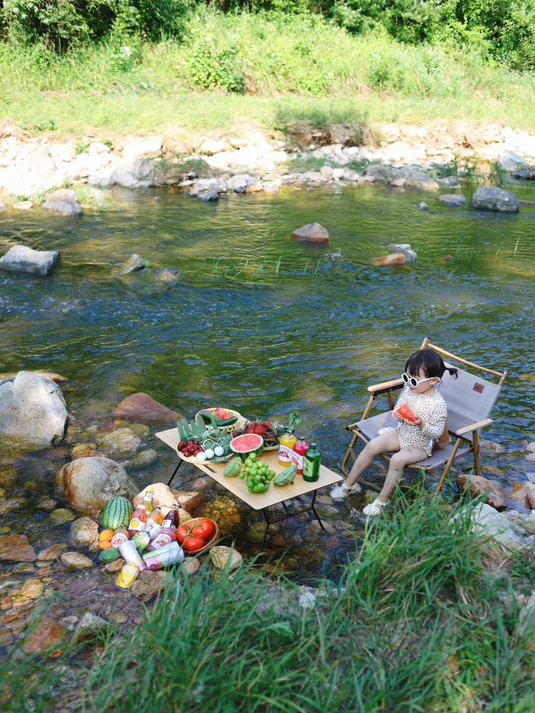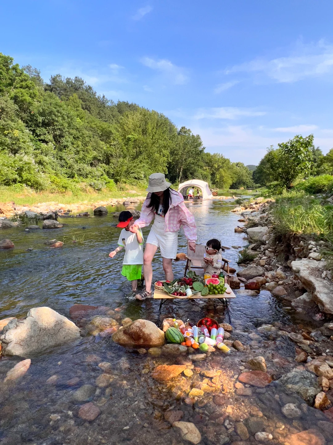 找到了一条很适合娃玩的小溪 水很浅也很清 车子可以就停在溪边 所以上下装备很方便 夏天的快乐不就是玩水吃西瓜吗🍉
