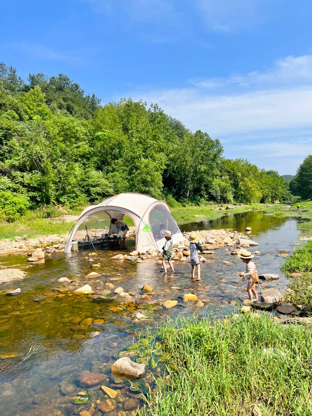 这个免费的溯溪地真的爱了💕 水很干净、浅浅的好适合娃玩水撒野! 车子可以就停在旁边🚗 上下装备很方便! 旁边有树阴🌿 也可以直接把天幕扎在水里 这个天气真的太适合玩水摸鱼了💦 夏天的多巴胺是溯溪露营给的🥳 娃玩了一下午压根不愿意回 穿搭: 🏊ryleecru 👗AnnieGirl 🕶️kigo