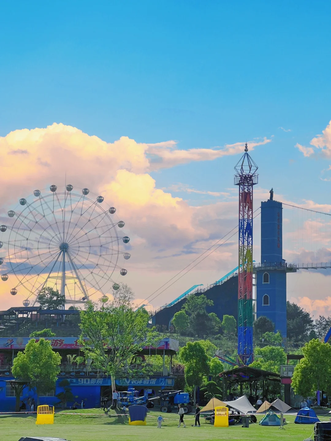 1️⃣儿童玩乐:水上乐园、溯溪、高空漂流、滑草、索道、激流勇进、玻璃栈道、大摆锤