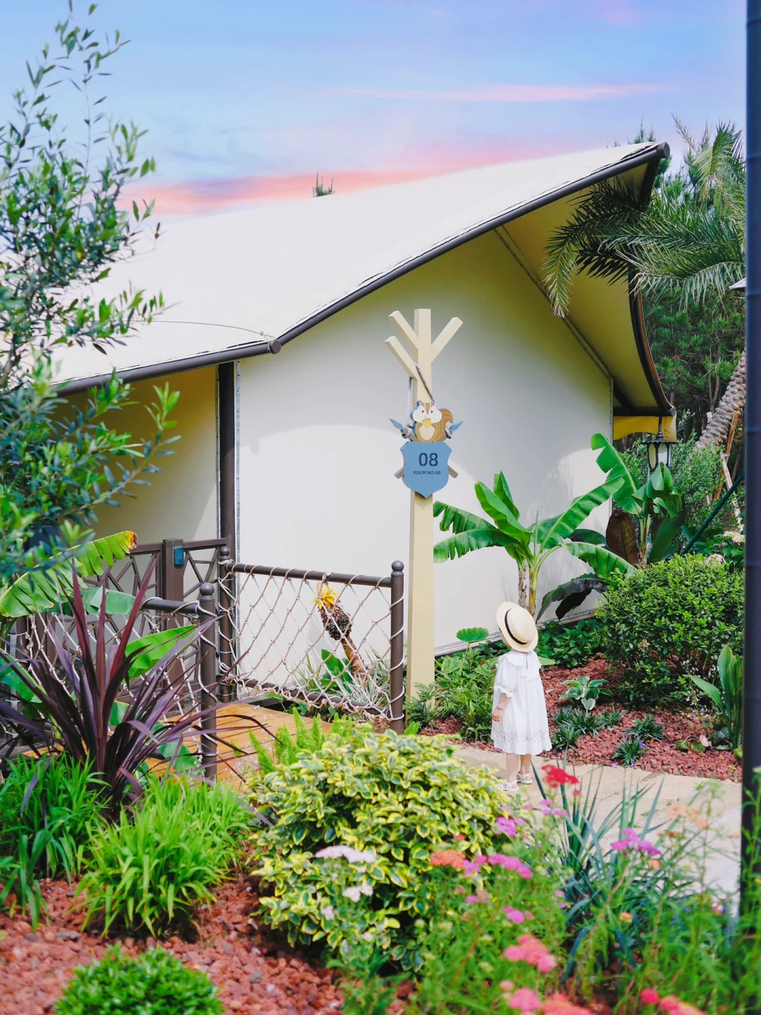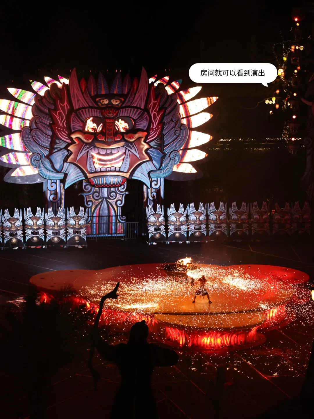 【住】带娃的建议跟我们一样,就住草原里面的酒店,这样即便是看篝火晚会的表演到很晚也不用着急出去🔥第二天可以继续玩,里面有两个酒店,我都住过,其实都挺不错的,巫傩部落的室内风格我更喜欢,而且有超大滑滑梯可以玩🥳松鼠部落就是小盆友会特别喜欢,每间房都会有松鼠🐿️在房间就可以跟松鼠互动,现在有了无边泳池加持就更绝了~