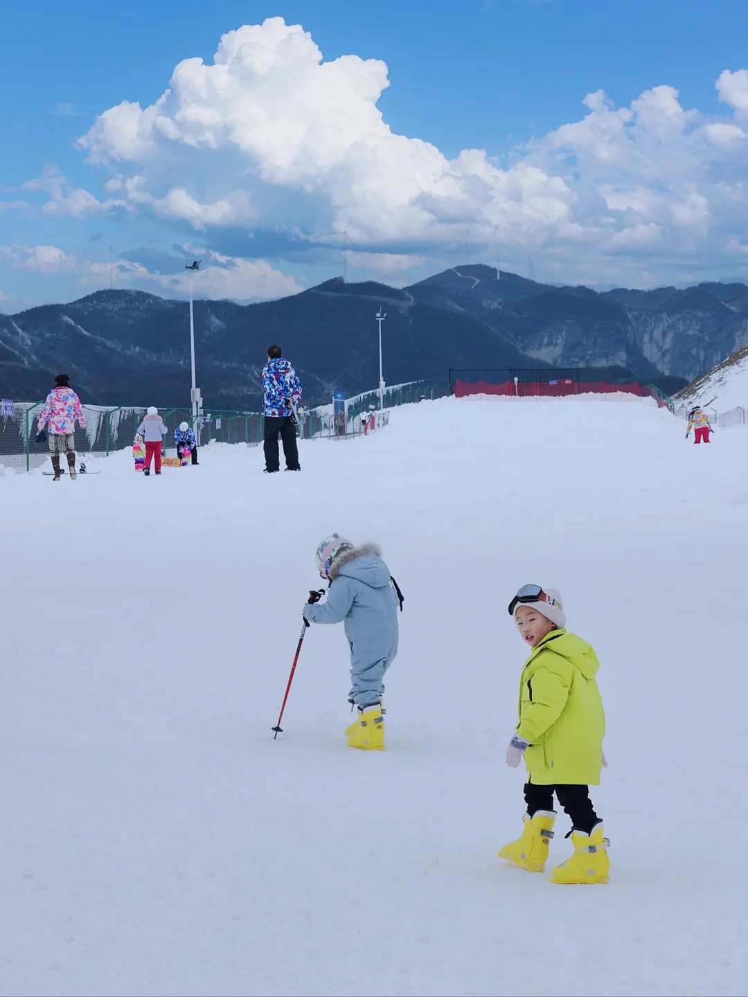 🎿滑雪一定要去大一点的雪场,而且周边的配备也很重要,因为我们是带娃去,可玩性很重要!这里有儿童娱雪场,有专门的教练可以教小盆友们,我儿子四岁多也是可以玩的