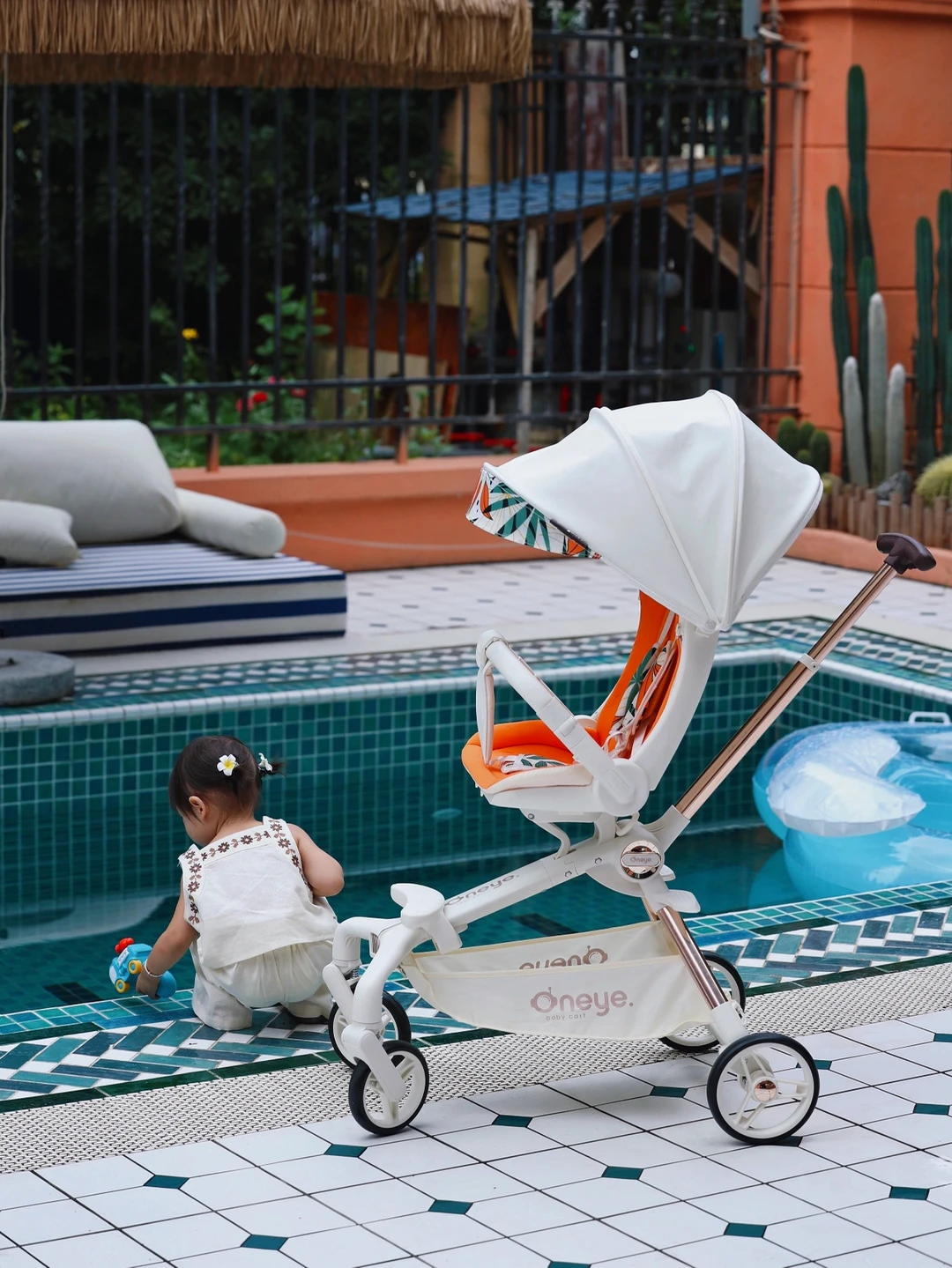 还有就是它是360度转向,单手就可以操作,收车也是一个按键就可以了,对于经常单独带娃出门的宝妈真的很友好!可以躺也可以坐,娃累了睡觉也是很方便舒适的!像我就是经常带她们出去短途旅游,这个遛娃神器真的对我来说太重要啦!