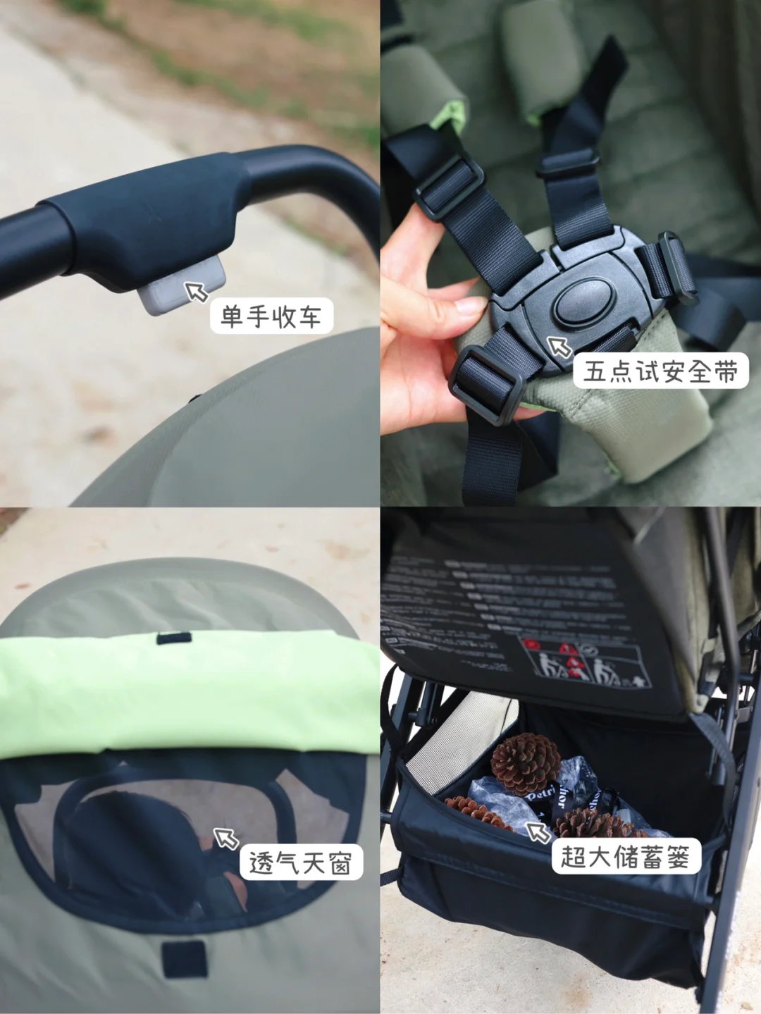 🧊因为是夏天出行,所以推车遮阳篷也是比较看重的。玲珑2是全罩式遮阳篷、遮风避雨防晒加倍,所以即便是夏天大太阳,也不用担心宝宝被晒到啦🌞还带有后视3D透气天窗,可随时观察宝宝状态,和宝宝互动,妙极了~