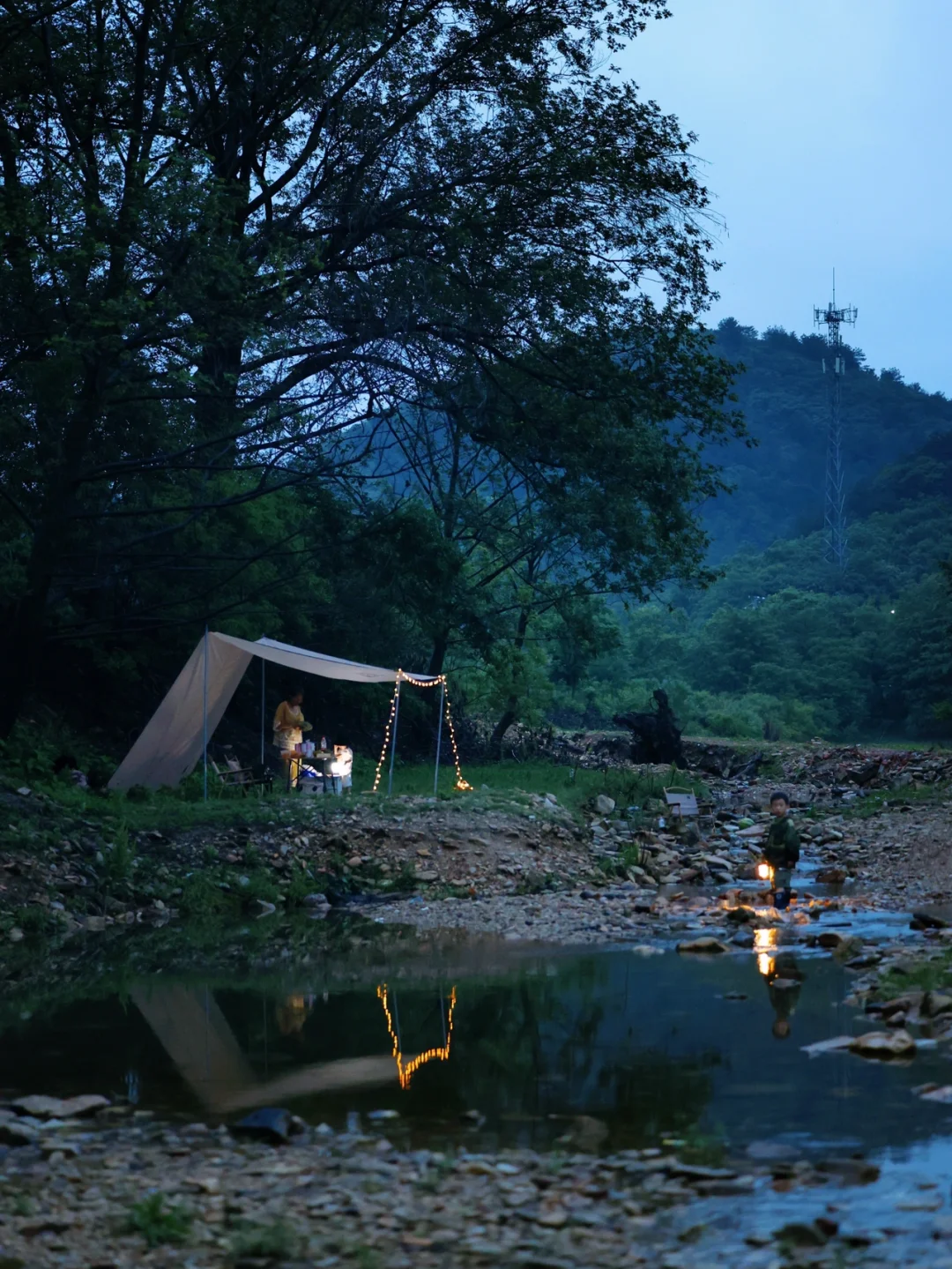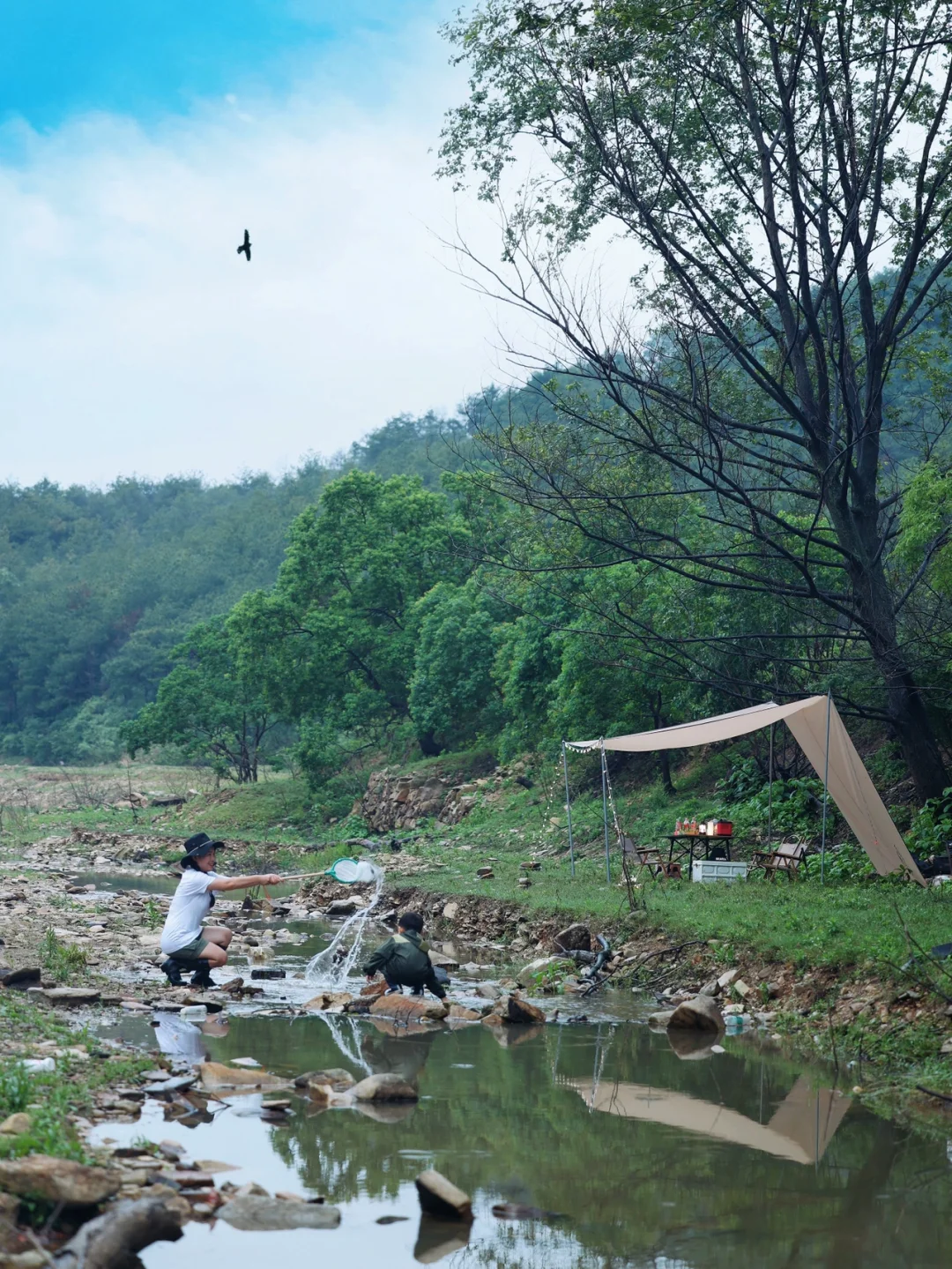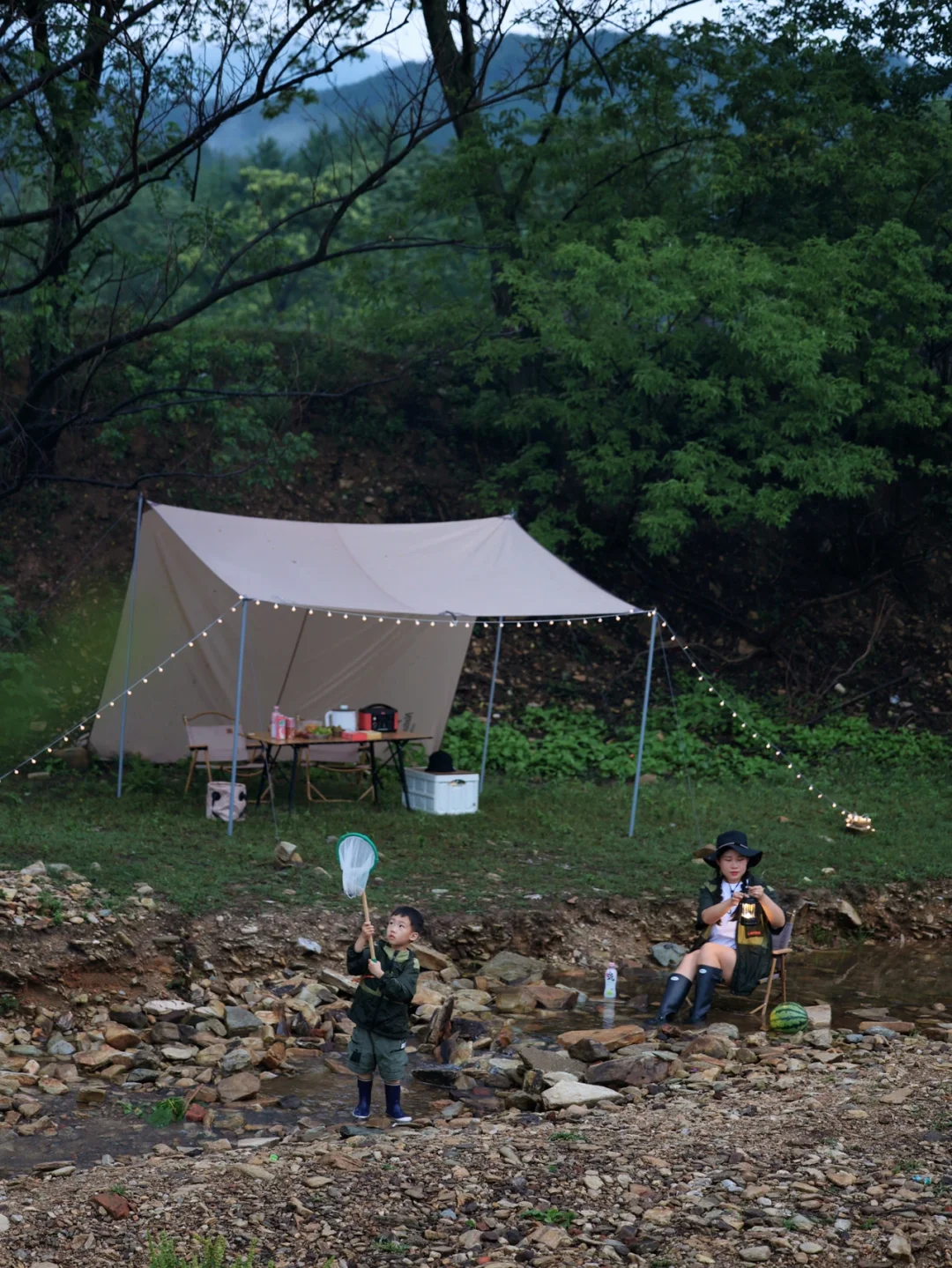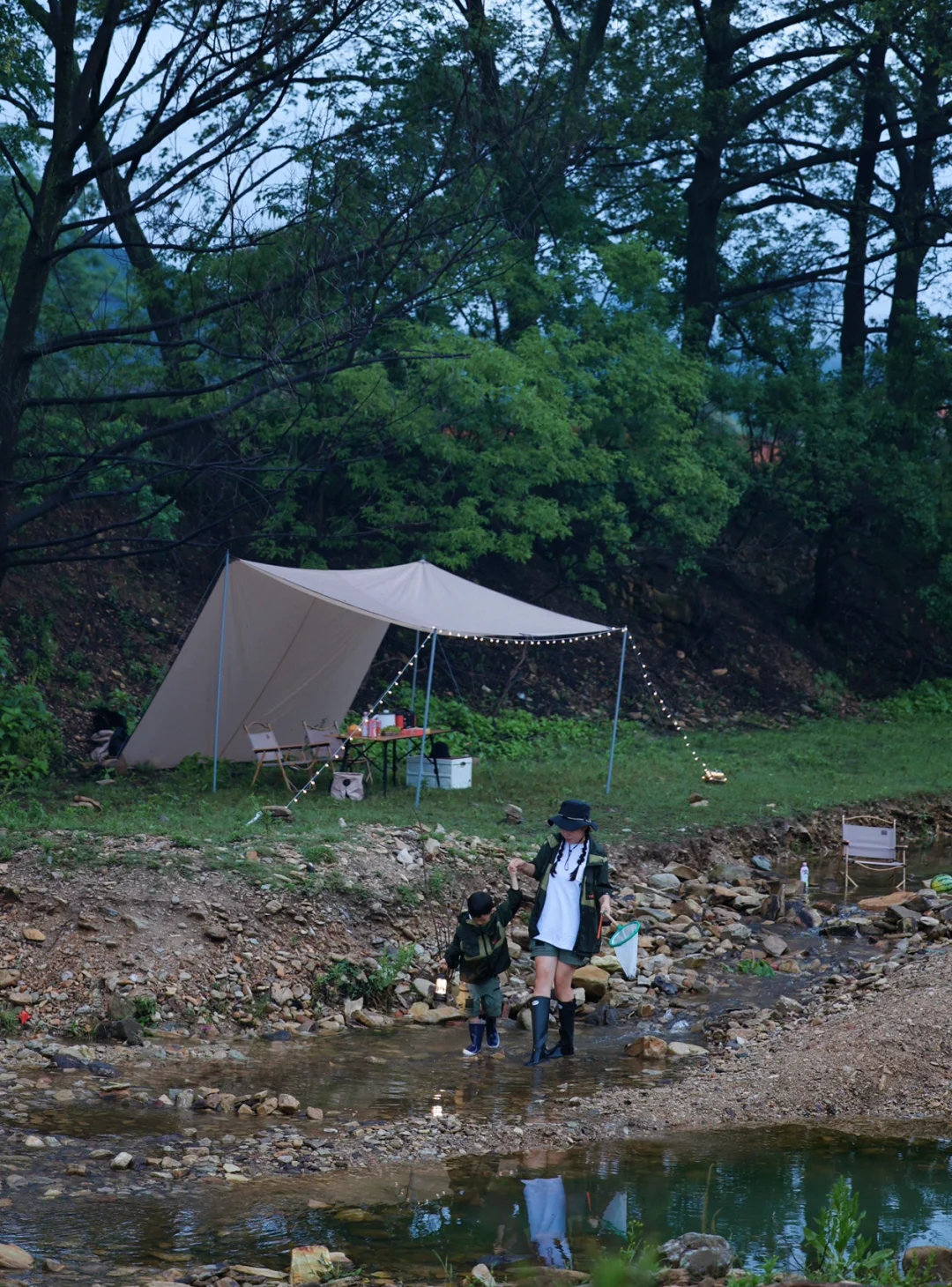 🔥最近天气热了,纯露营突然不香了,夏天正确的打开方式是玩水,寻了一个无人山谷里的浅滩,可以带娃溯溪玩水捉虾🦐旁边有草坪可以扎帐篷跟天幕