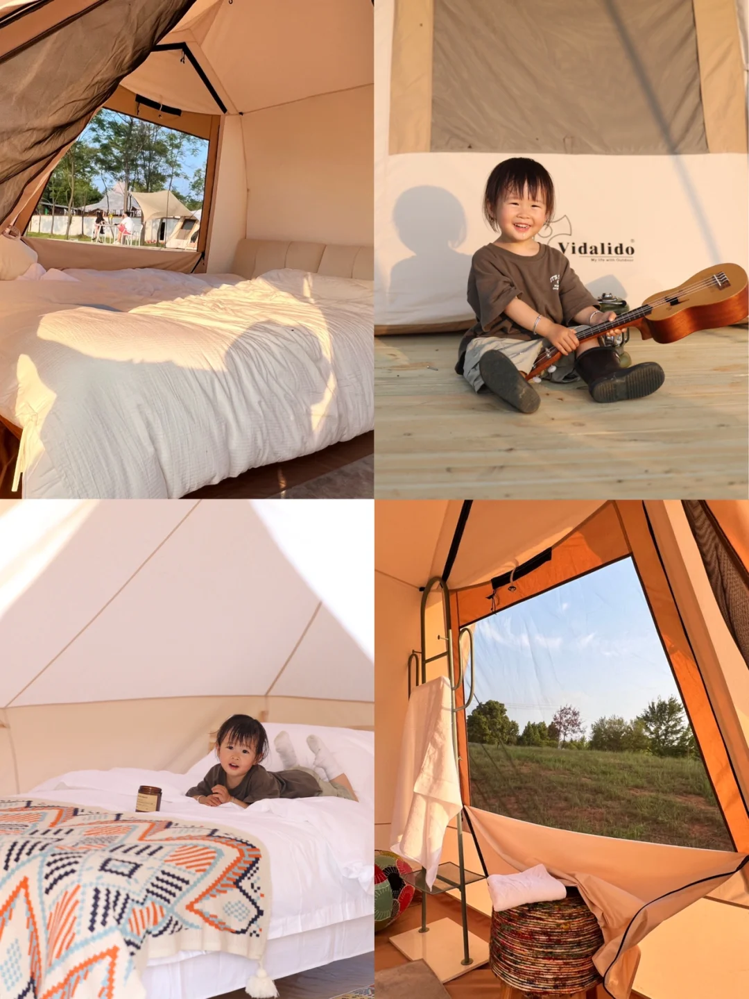 🦢因为是新开业的原因,我觉得现在的价格都很划算!因为他这里分了好几种,可以自己带帐篷订营位就行,嫌麻烦也可以直接住帐篷的,帐篷里面什么都有,到了放下东西直接玩就行了!价格从💰299到799不等,即便是最便宜的轻奢帐篷,里面的床也挺大的,睡两大一小没问题!如果是家庭出行的话,就建议住大蒙古包的,空间很大,有两张1.5m的床,可以睡不少人,也才399⛺️
