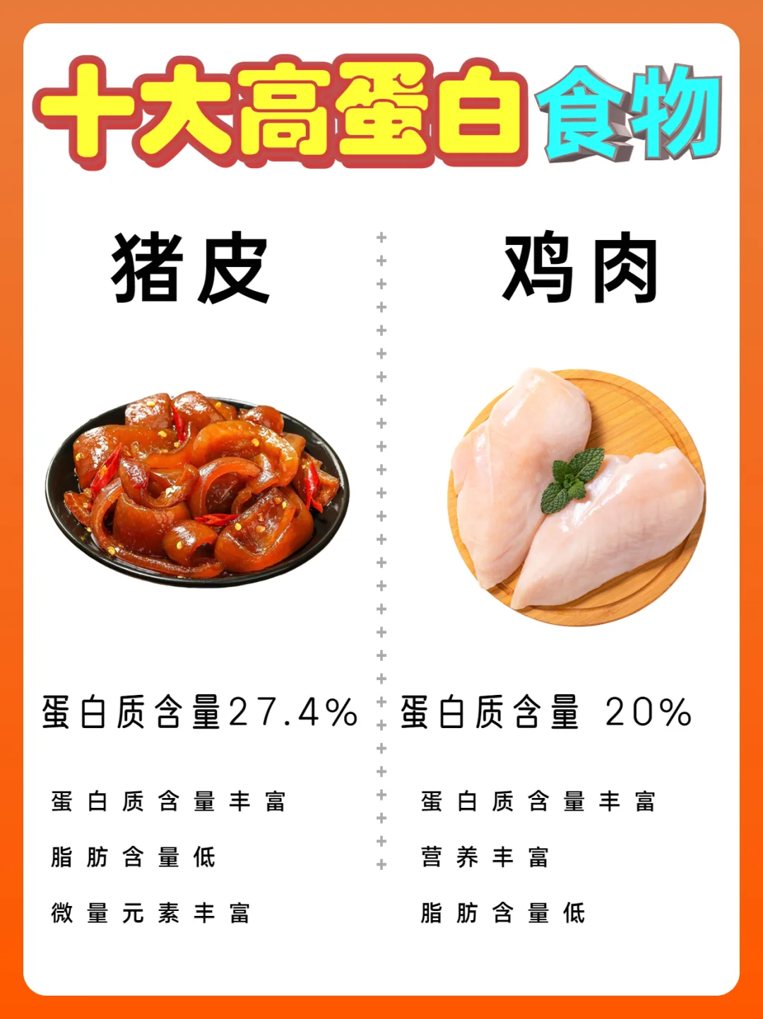猪皮的蛋白质含量不少于猪瘦肉。它的味道也很独特,脂肪含量特别低。优质的蛋白质
