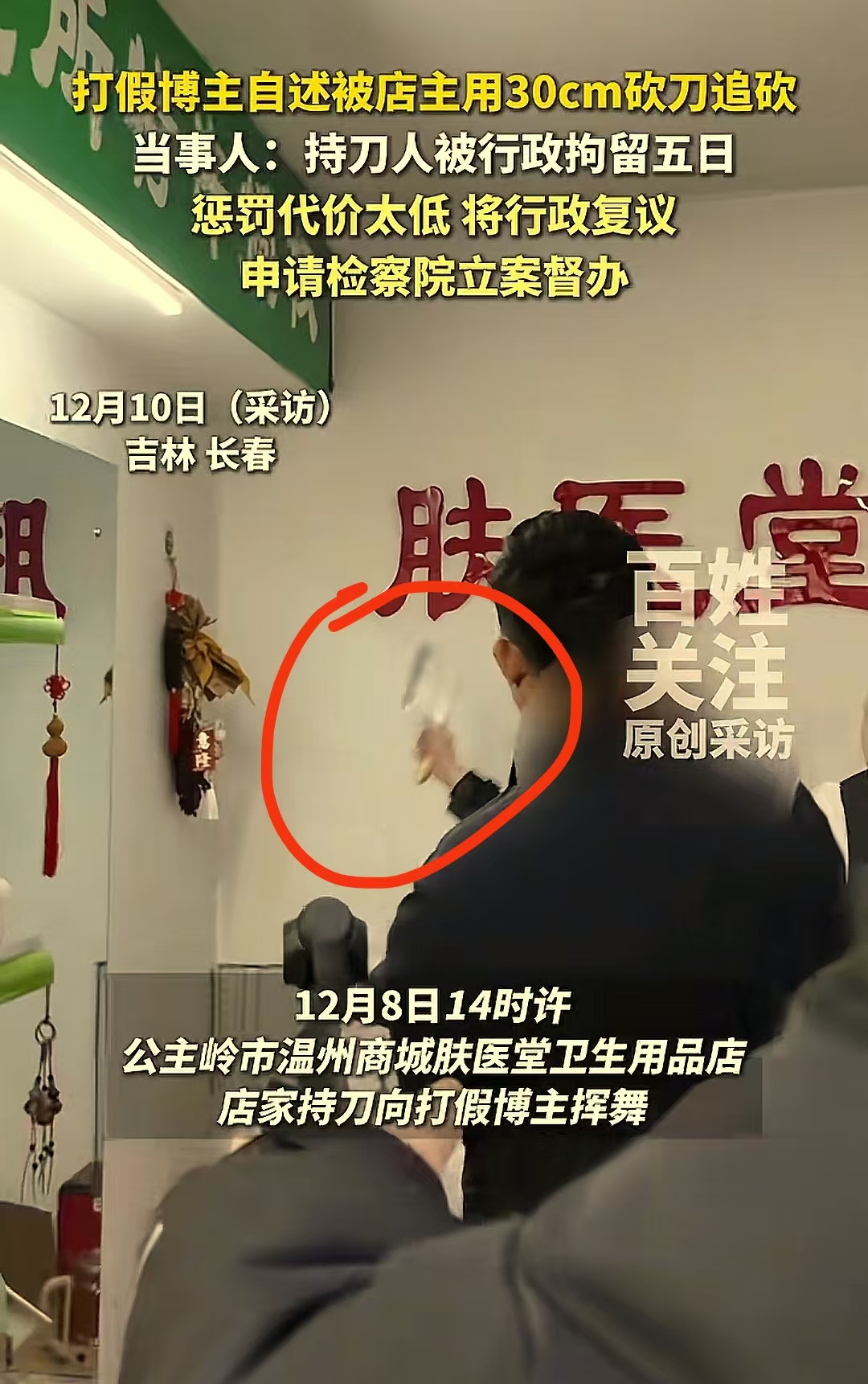 长春打假惊魂!打假博主去卫生用品店进行打假,被店主用30cm砍刀追砍!警方:行政拘留5日;博主:“拿到砍我就是要我性命,这处罚太轻了,将申请行政复议!”网友:拿刀砍人,什么时候惩罚这么轻了?