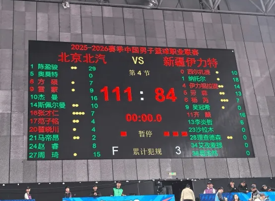 12月15日 CBA常规赛,北京111-84战胜新疆。