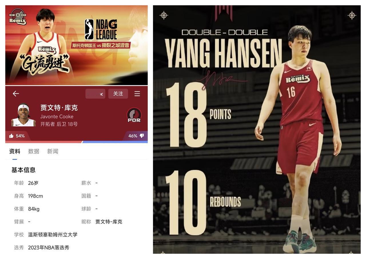 ✨开拓者队选杨瀚森太值了✨ 🐼 杨瀚森打发展联盟简直就是虐菜,而且他自己不需要追求数据的情况下,也能打出18分10篮板和4助攻。贫道个人认为,杨瀚森去撕裂之城混音队打球,能够培养自己的嫡系队友。 🐼 撕裂之城混音队打后卫的18号贾文特·库克表现就很不错。杨瀚森需要和他多打配合,把他带到开拓者队,杨瀚森就有了给他传球的后卫了。以后瀚森和库克就成为开拓者队内的搭子。 🐼 杨瀚森在发展联盟比赛,要多帮库克的忙,帮助库克上调到一队,库克就可以投桃报李,给杨瀚森多传球,两个人互相成就。关注杨瀚森的球迷,不防也留意一下贾文特.库克的表现。二者将来可能成为开拓者队的"穷人版"姚麦组合。 作者:龙须面🧐