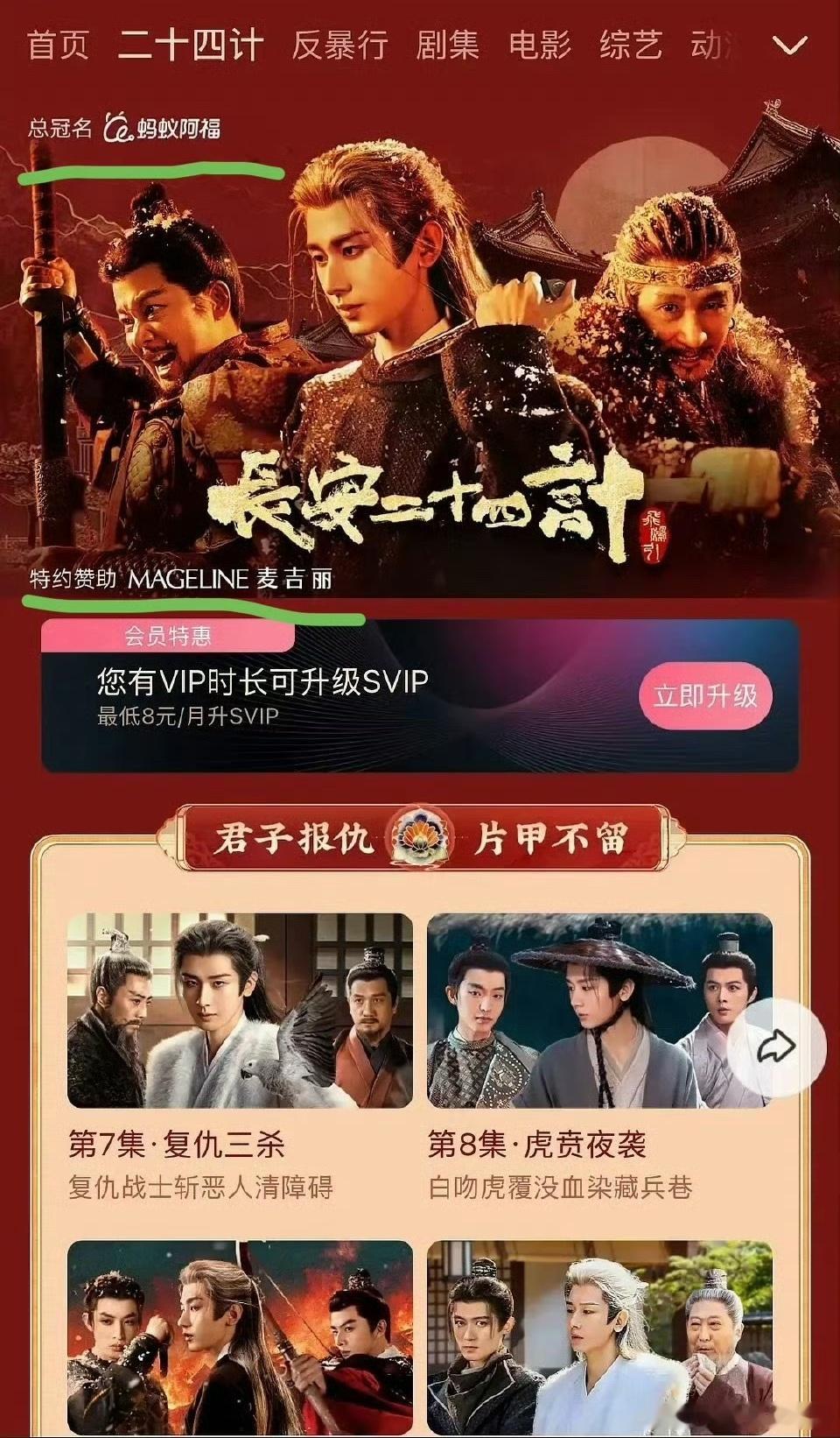 有效播剧!成毅《长安二十四计》新增总冠名蚂蚁阿福,特约赞助麦吉丽,商业价值up🔥